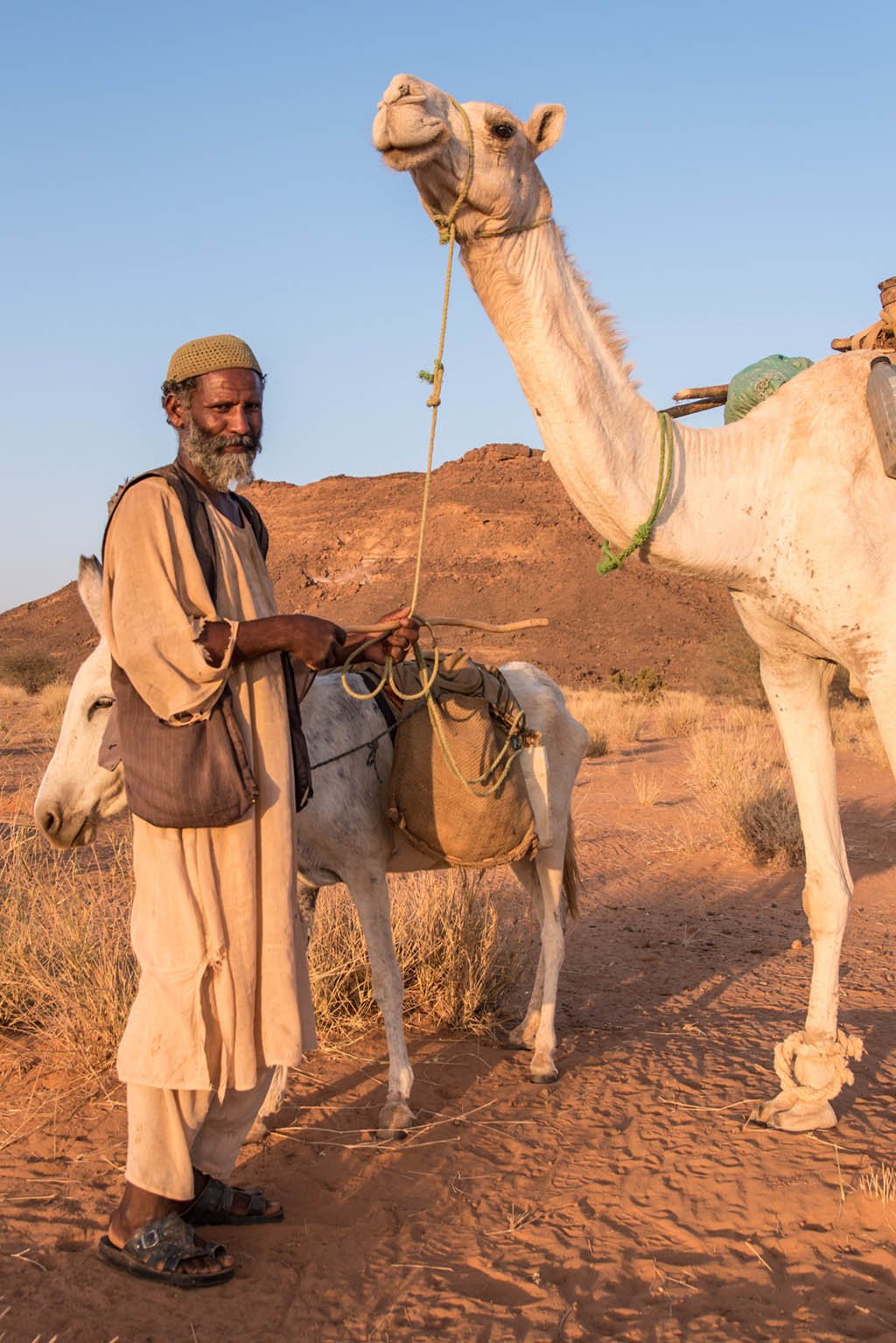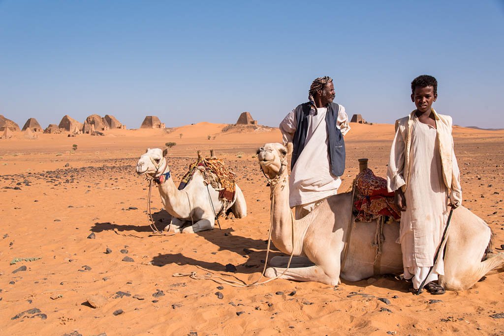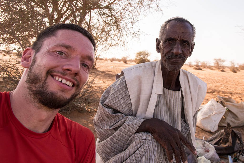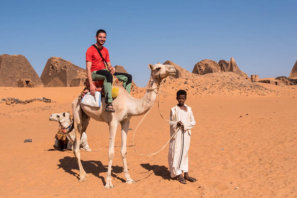 I would have liked to stay longer, but I still had to reach the large royal pyramids 4km away. On my way, I met an old man with a camel sitting in the shade of a tree. Instantly, he waved his hands motioning me to come over. He offered me water with lemon juice, I, in turn, gave him a Muesli bar, and in return got one more drink. I realized that Sudanese don’t accept a tie when it comes to gifts 😉