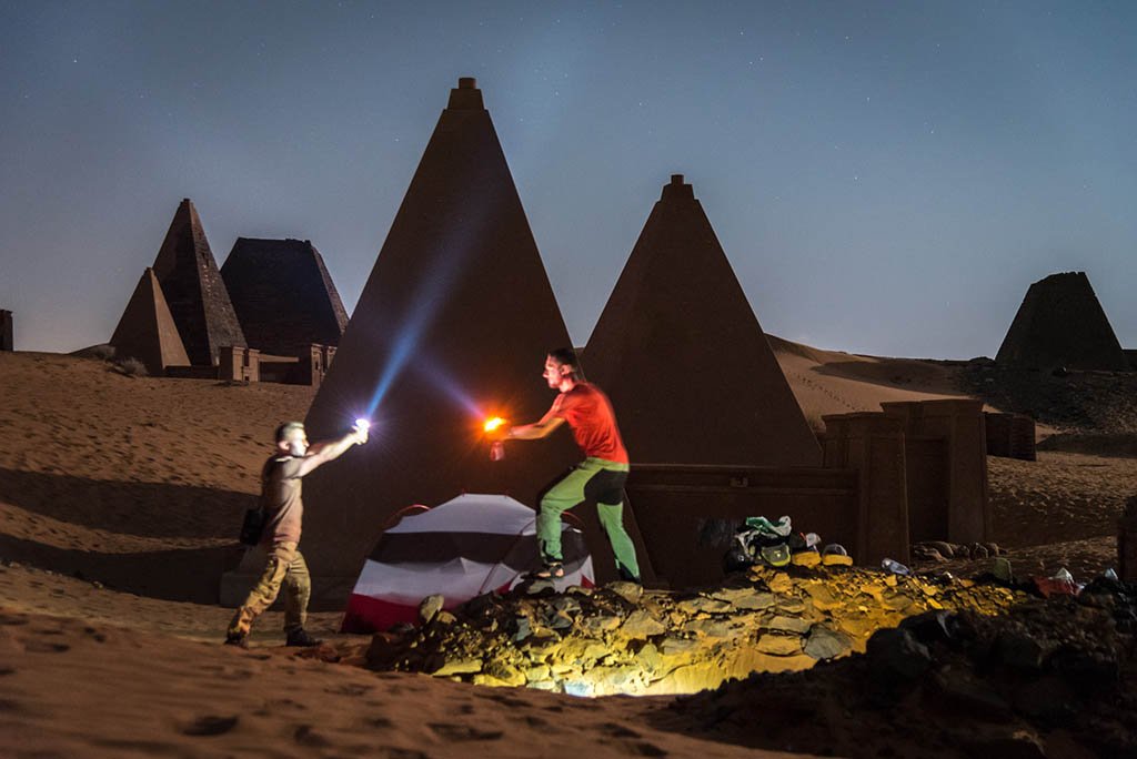 On reaching the royal pyramids of Meroe, I recognized Edin and Ahmed. I had met with them at the hotel in the morning before embarking on this trip. Ahmed is a 2nd-year medical student at the University of Shendi and Edin is a Swiss adventurer who has traveled through Central Asia and Latin America and was now on an expedition in Sudan. I offered to share my tent with both of them for the night. As night fell the hazy heat of day lifted to reveal the stars, just gazing at the midnight blue canvass above stole every thought from my mind, there was the constellation of stars above and a backdrop of the moon engulfing the vast pyramid complexes – another moment to savor!