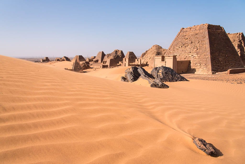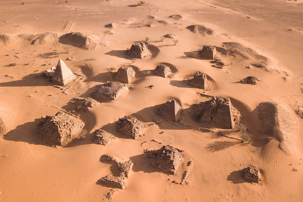 The pyramids of Meroë hold the fragile footprints of a mysterious and long-forgotten civilization, much smaller but just as impressive as the more famous Egyptian ones. More than 200 are concentrated in one location, enough to astound visitors and historians alike, and it is unusual that an archaeological site of such significance has almost no tourists.