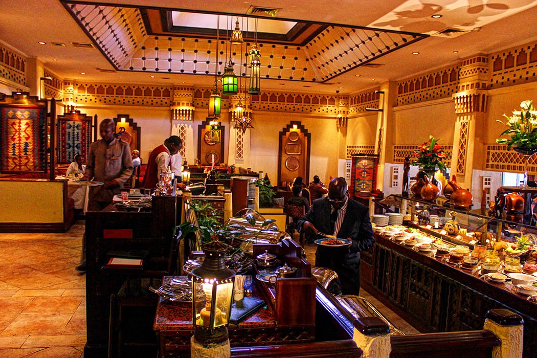My first stop was Café Maghreb located in Nairobi’s Serena Hotel.  The Moroccan-styled Café Maghreb is an internationally themed buffet breakfast and lunch venue. It features both a table d’hôte (fixed price menu) dinner menu and a 24-hour brasserie service.