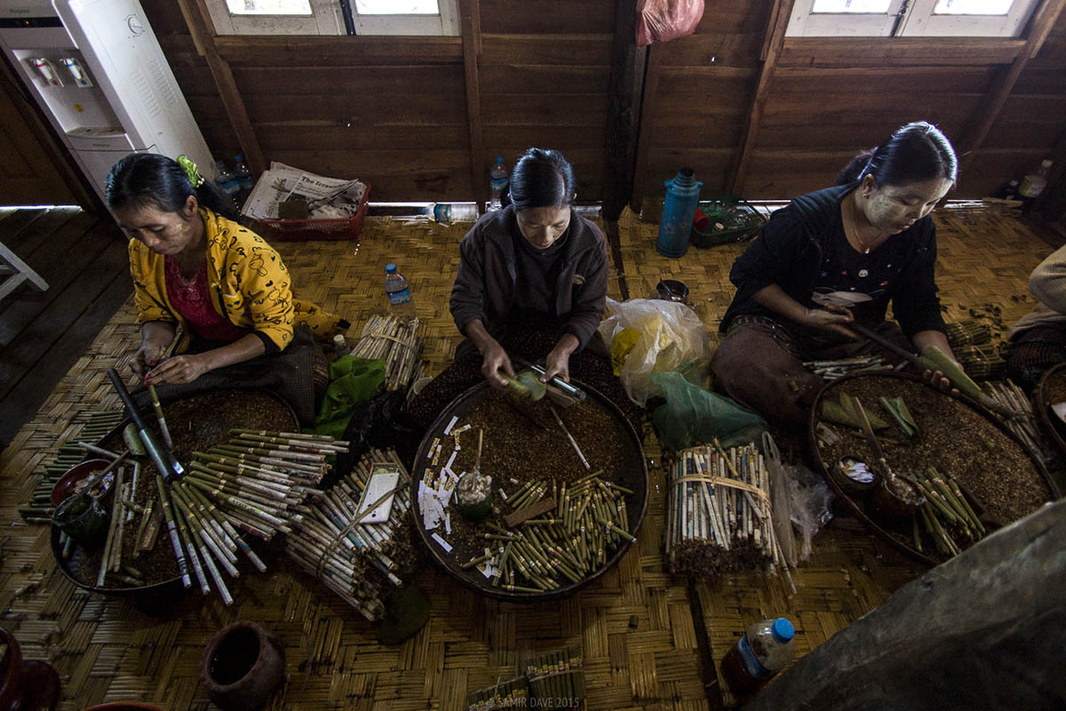 Cheroots are inexpensive Burmese cigars smoked by men and women alike. These are hand made with plain or flavored tobacco.