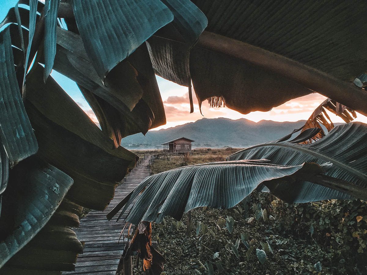 Sunrise on Lake Inle. Our little cottage at sunrise.