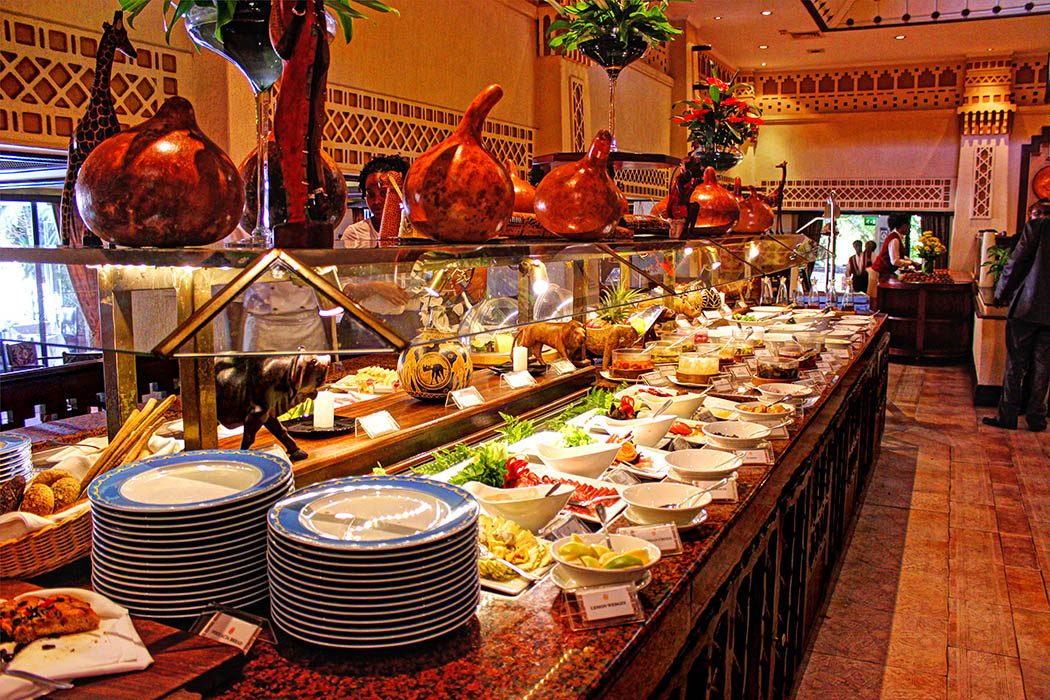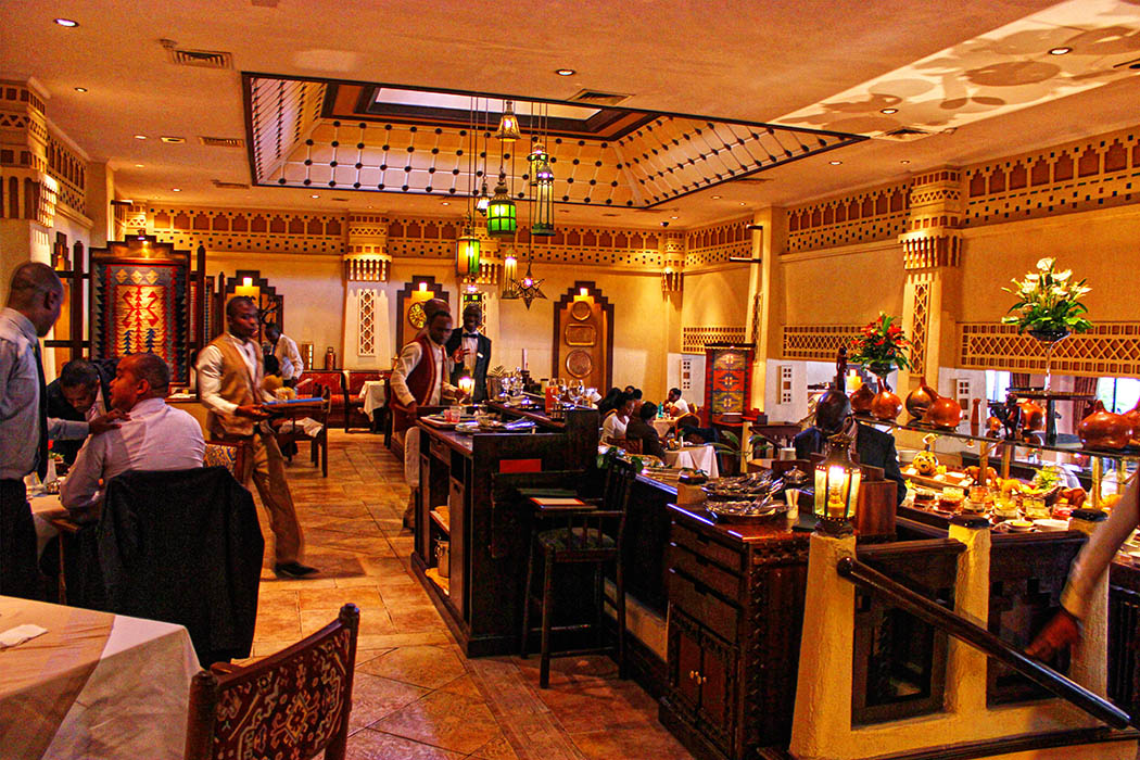 My first stop was Café Maghreb located in Nairobi’s Serena Hotel.  The Moroccan-styled Café Maghreb is an internationally themed buffet breakfast and lunch venue. It features both a table d’hôte (fixed price menu) dinner menu and a 24-hour brasserie service.