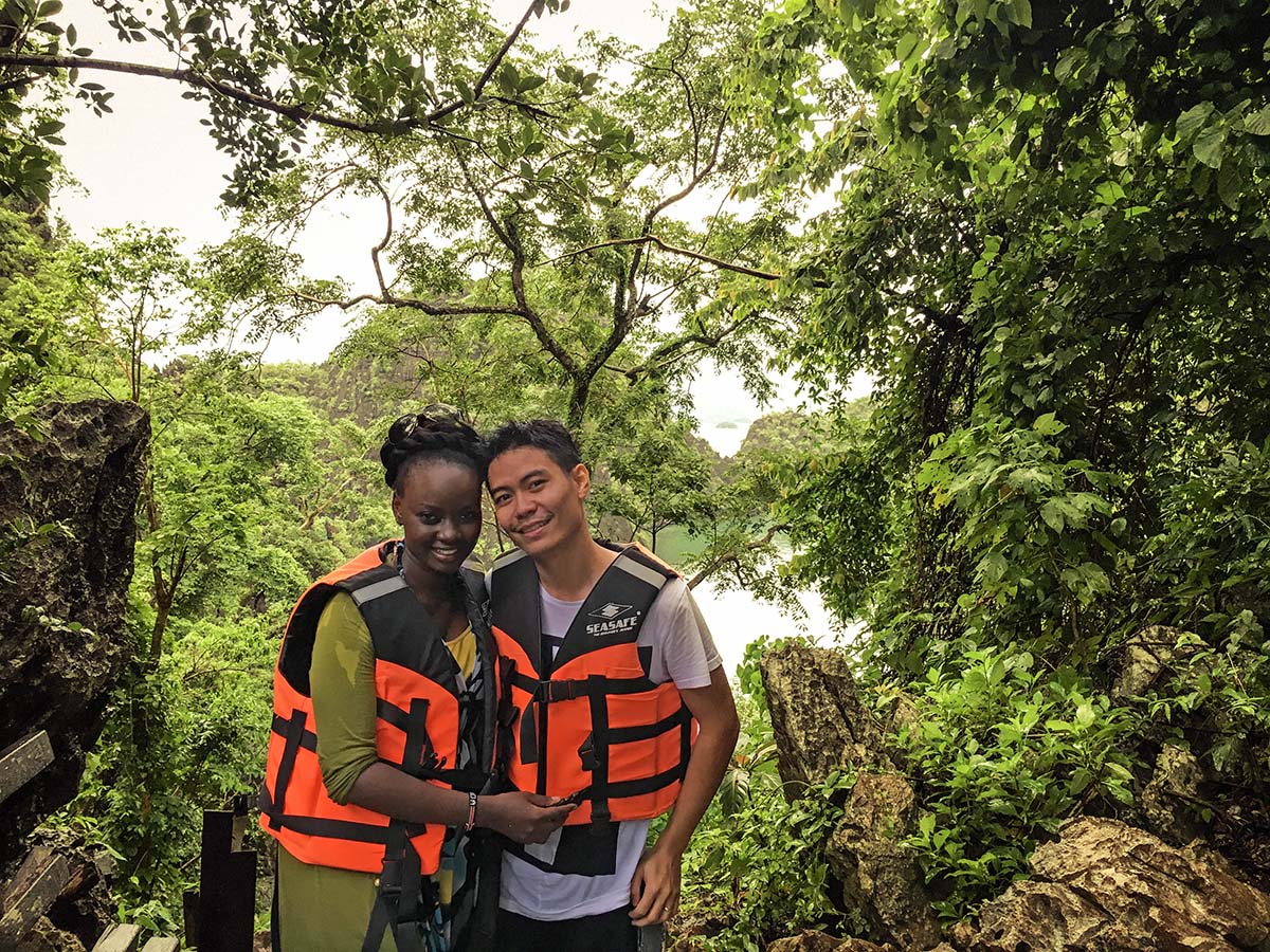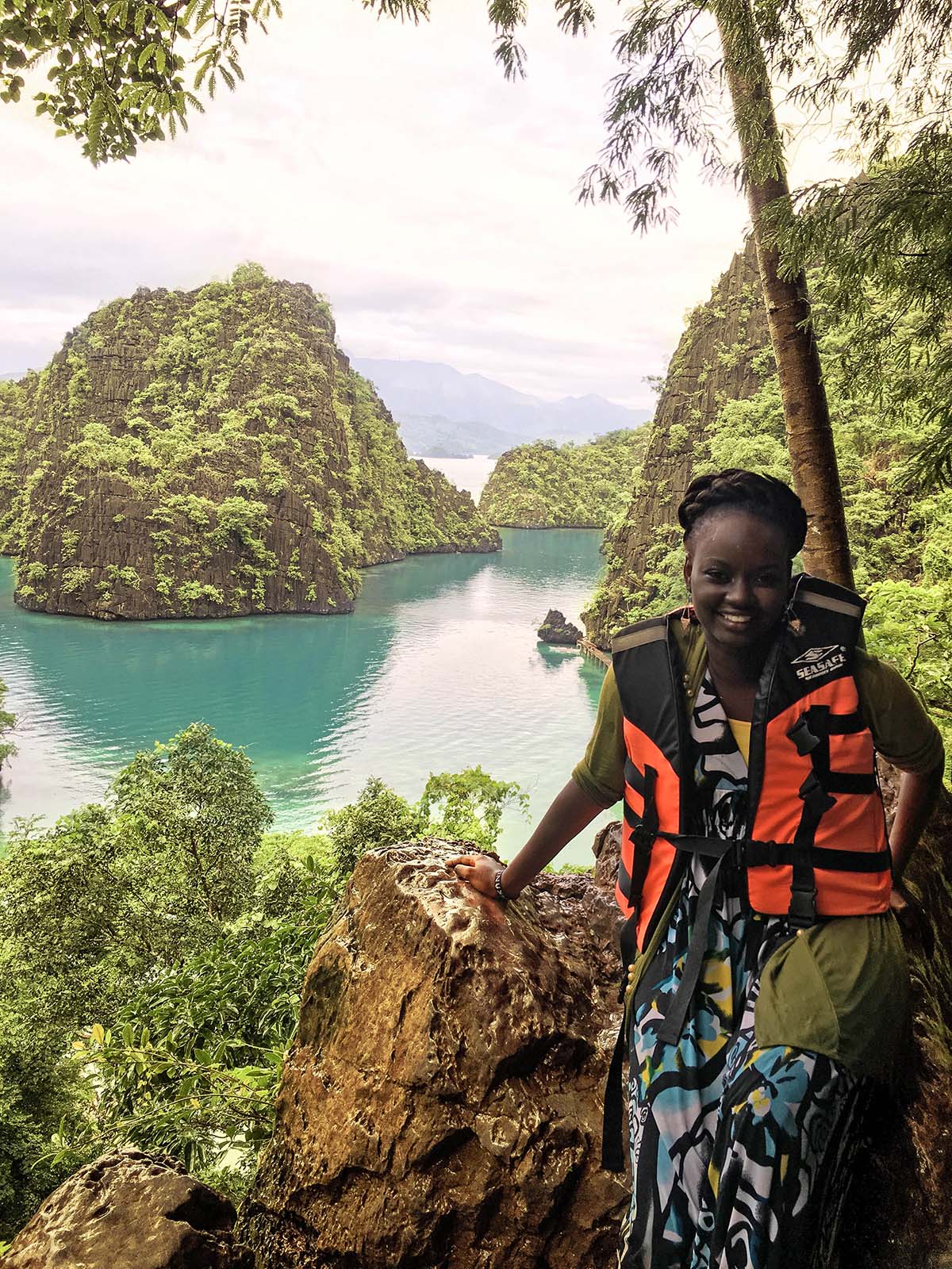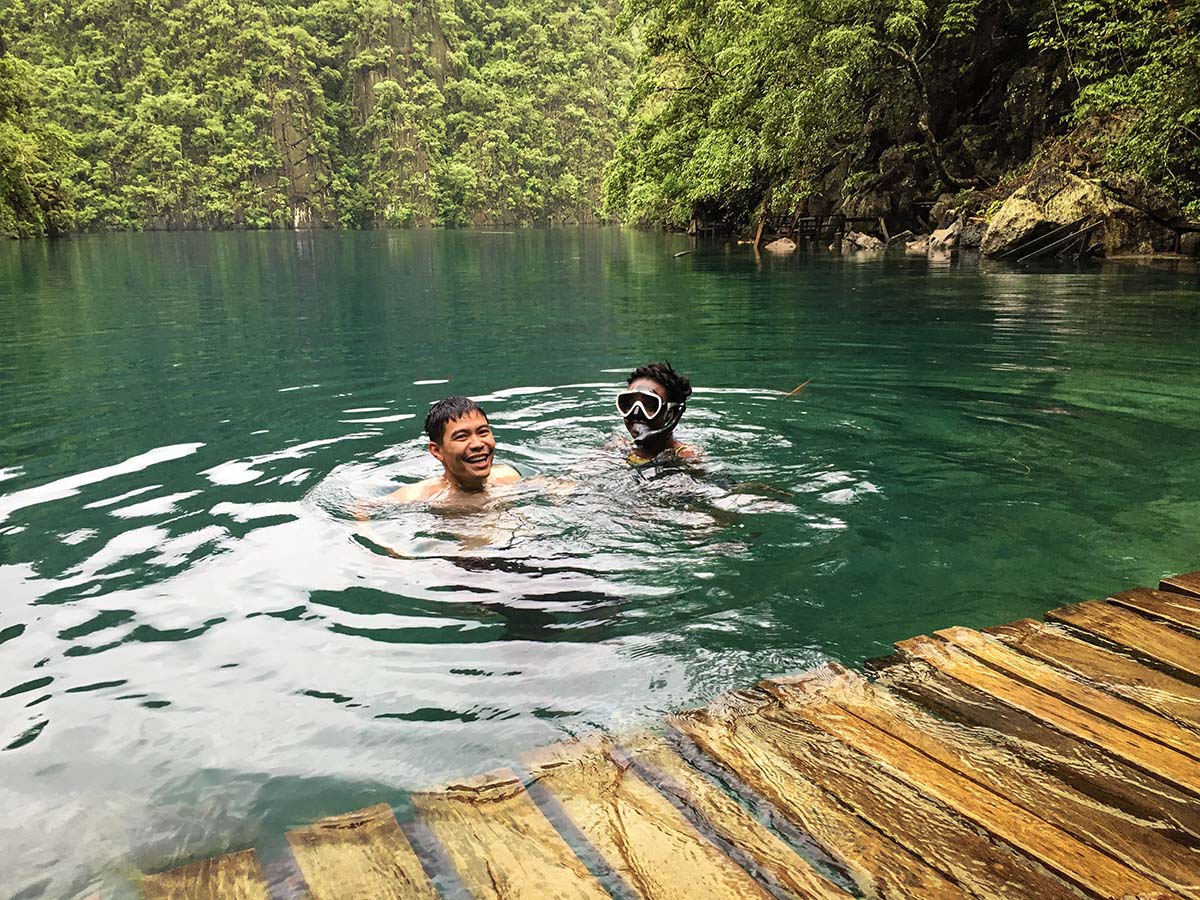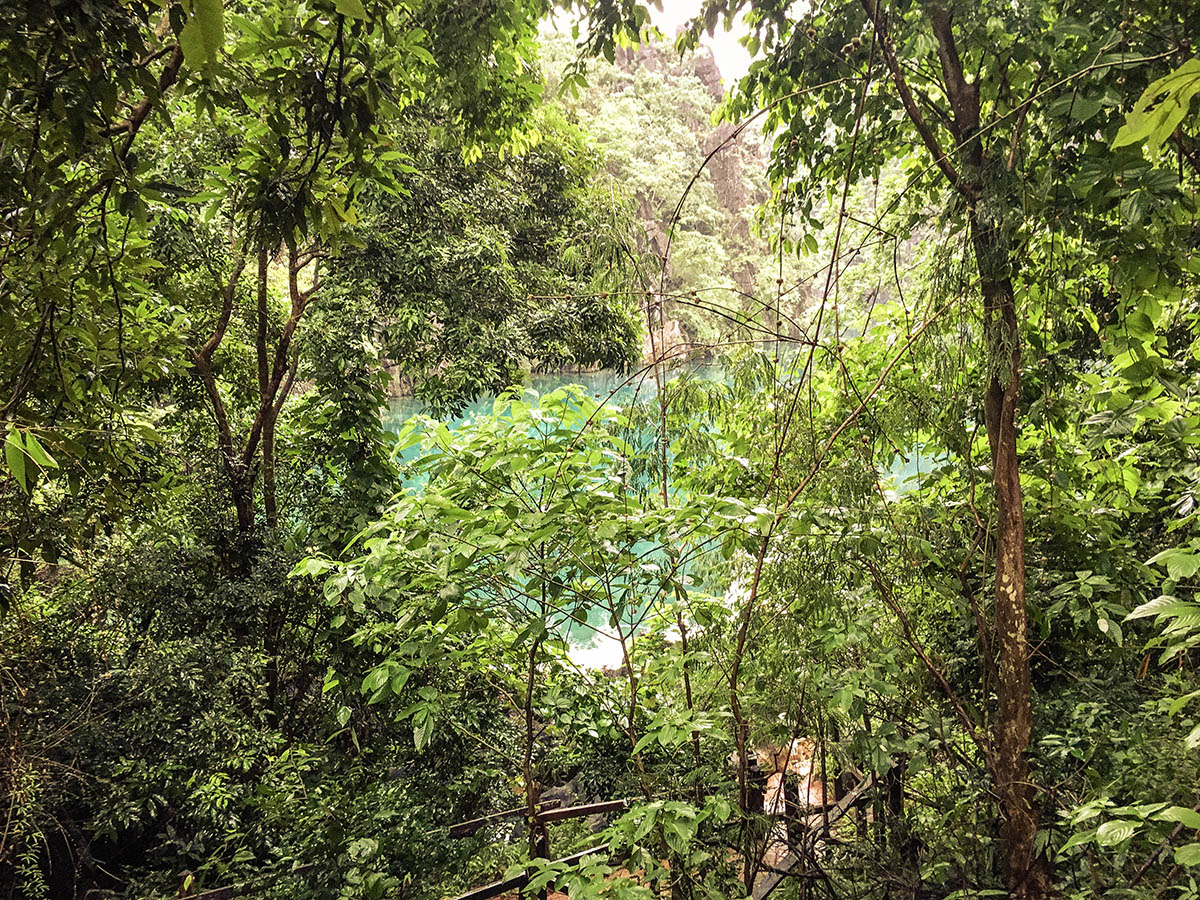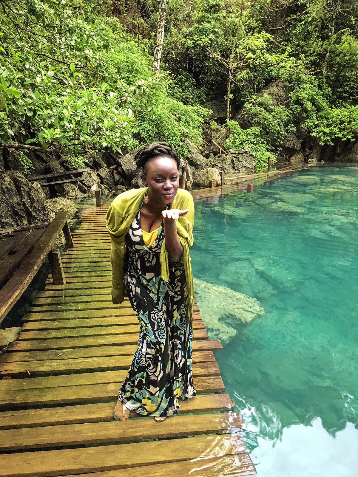 The next day we hired a boat with two guides and set out to a tiny island called Tara, a typhoon stricken region where government assistance had not helped the residents much to rebuild their storm stricken houses. As we sailed through we hopped through so many islands I lost count at fifty something. When we arrived at Tara, we brought them some relief food of rice. Being the missionaries we were, we got to preach and tell them about the gospel of Jesus Christ. My mother in law and I also got to teach them a Swahili song “Mambo Sawa Sawa.” It was a beautiful time. On our way back we passed by the Twin Lakes, a tunnel in between the hills that lead you to two fresh lakes.