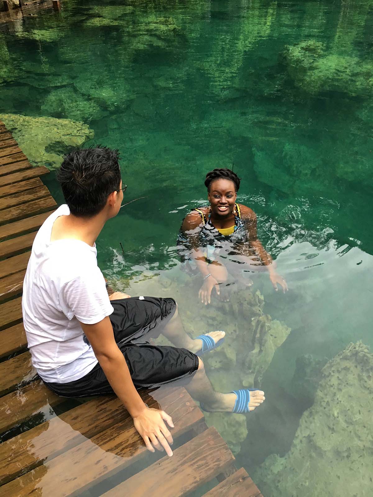 The water is so blue and clear, looks like God made a swimming pool in the Island.