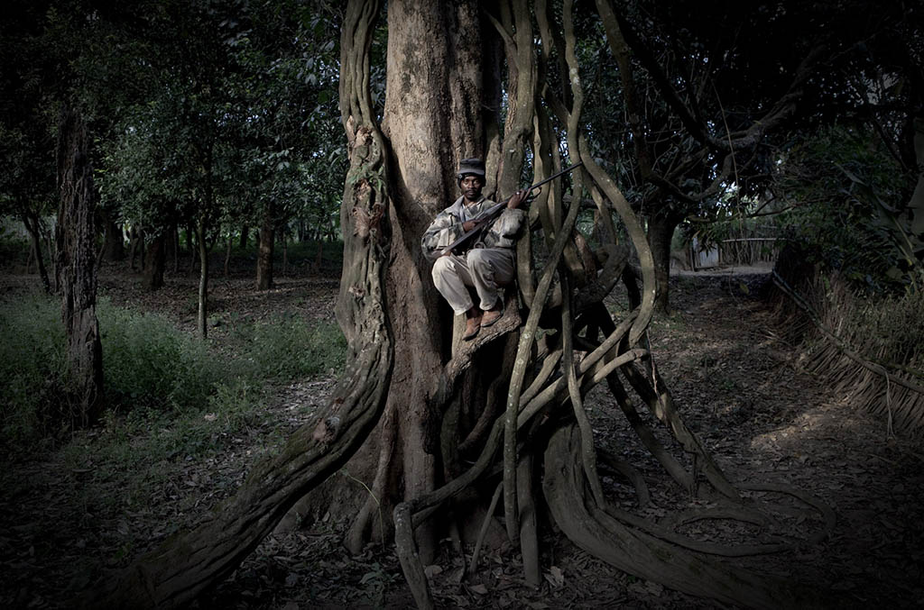 Amadou Djallow, a tailor by day and hunter by night . Photographed in his home village, Horé Dimma where the source of River Gambia is located.