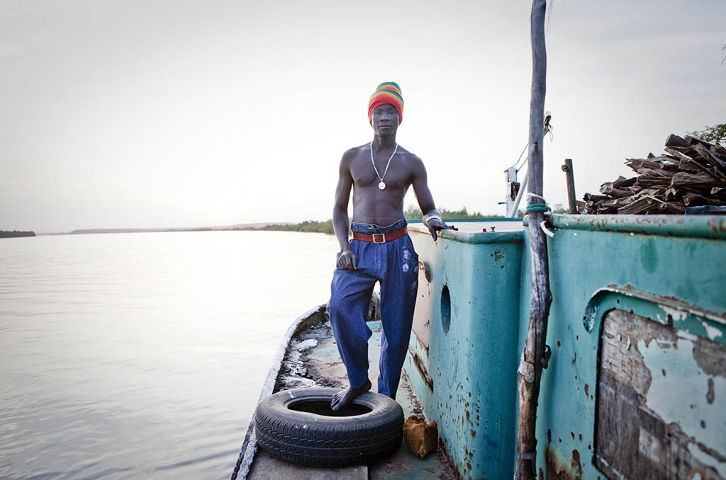 Lopiz Jarju, one of the few full-time sailors still working on River Gambia. He works for the Gambia Groundnut Corporation on one of their tugboats that pulls barges with 100 tonne loads of peanuts from upcountry loading centers on the banks of River Gambia to a processing plant where the river meets the Atlantic ocean at the capital, Banjul.