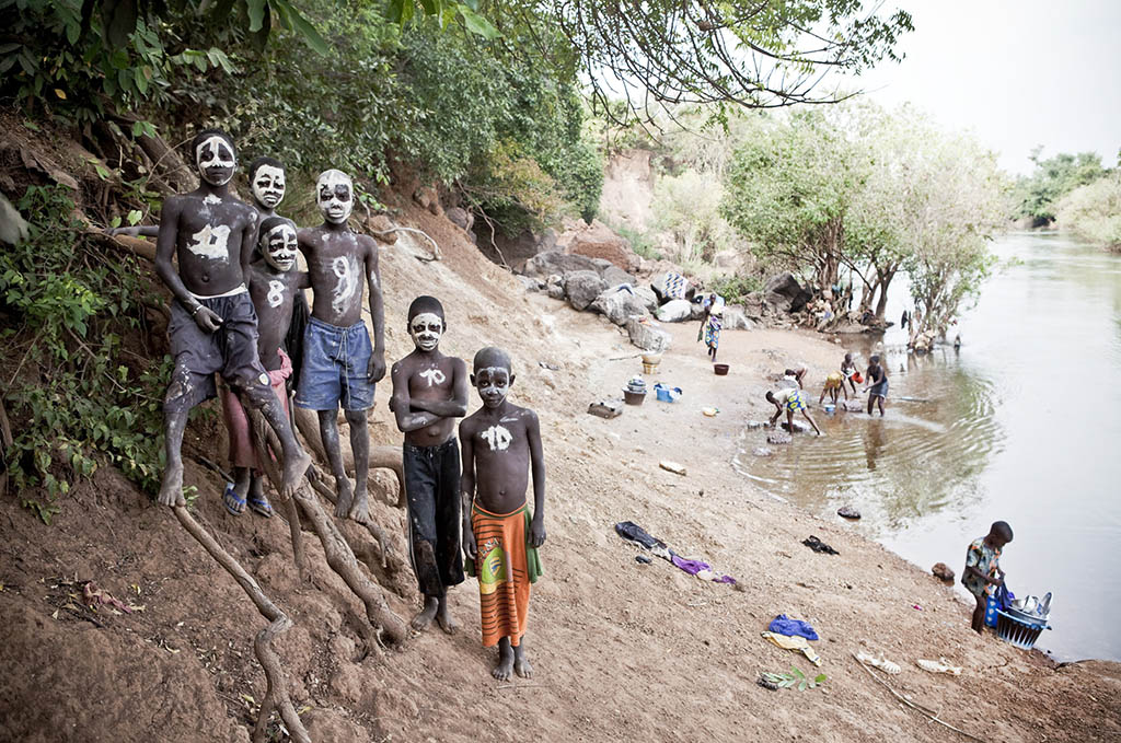 Young boys pose for a portrait on the banks of River Gambia in Senegal. They said they had painted their faces like skulls for their own amusement.