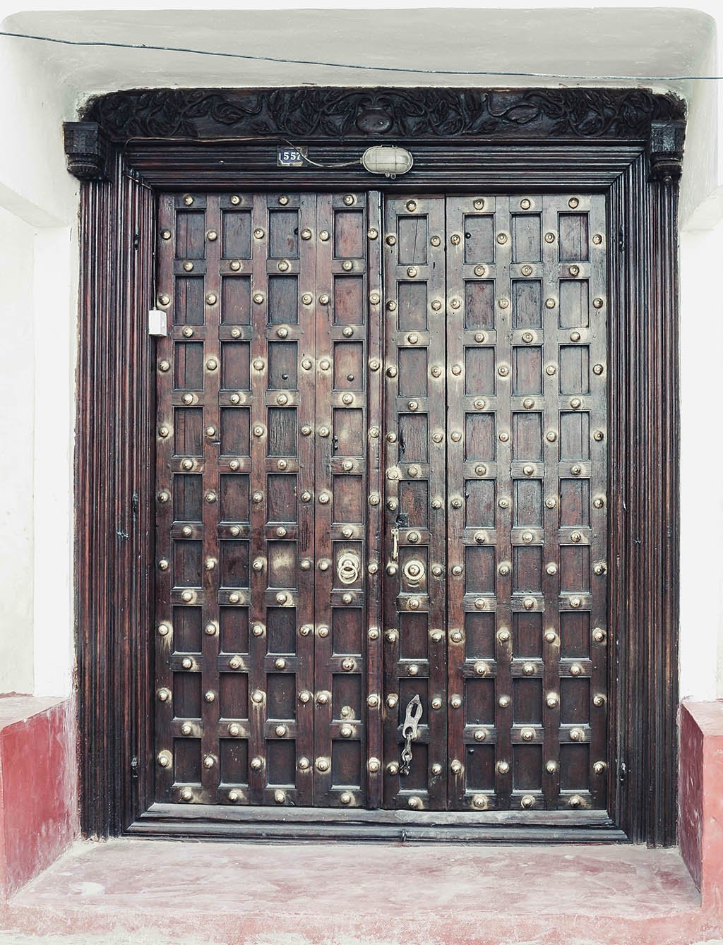 The architecture speaks of many layers of a rich and varied history. Arab mansions with high, blank white walls sit next to the lacy wooden balconies and colorful stained glass windows of grand Indian residences. The famous Zanzibari doors with brass meticulously carved in mahogany and teak grace the front of almost every building of note. Brass spikes another distinctive feature of Zanzibari doors is an import from India, owing much to the Havelis of Gujerat, homeland of many of Zanzibar’s wealthy Indian merchants. The brass was used as a defense against war elephants that would batter down fortified doors in the tribal wars of Punjabi history. Needless to say, this distinctive feature of Stone Town’s doors has always been purely decorative.