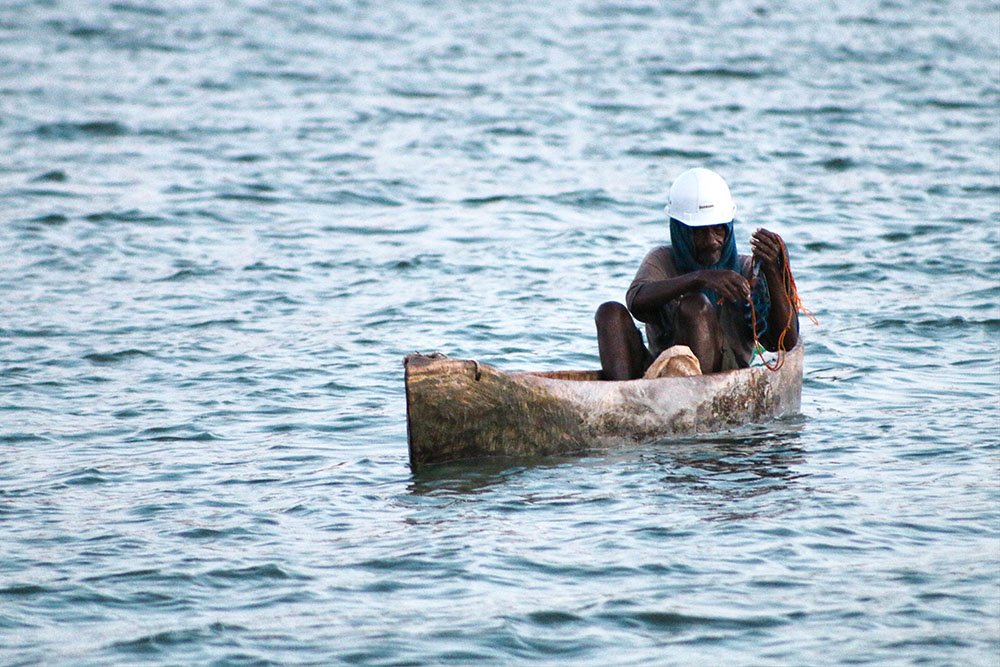 fisherman in the tiniest of boats. How on earth does that thing stay afloat?