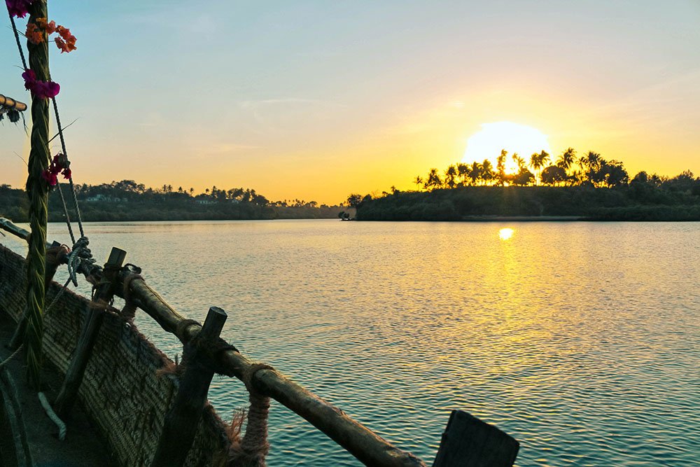 Going on the dhow for sun downers is a must if you ever visit the Moorings. This involves a scenic cruise up the creek on a dhow while watching the sun go down. We were a bit late for the sun-downer so we were quickly ushered onto the dhow so that we could start the trip.