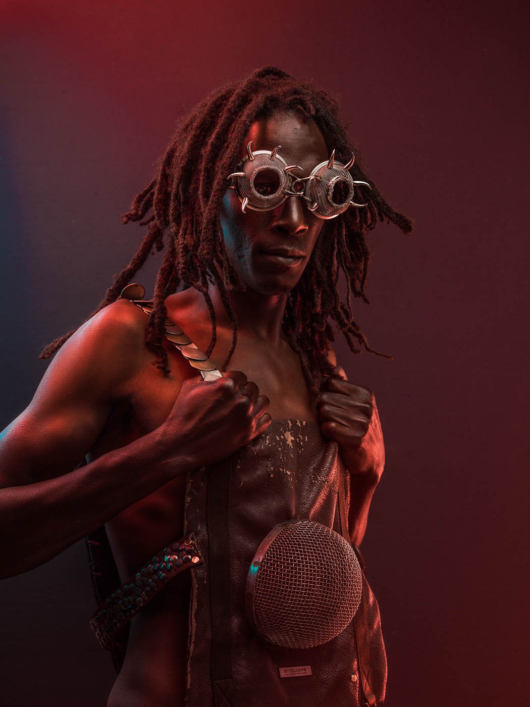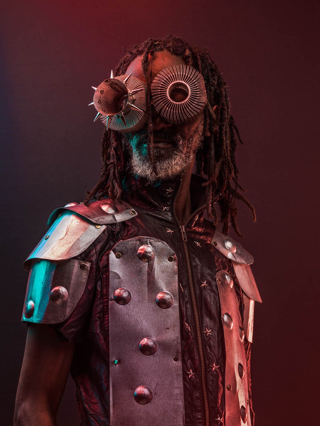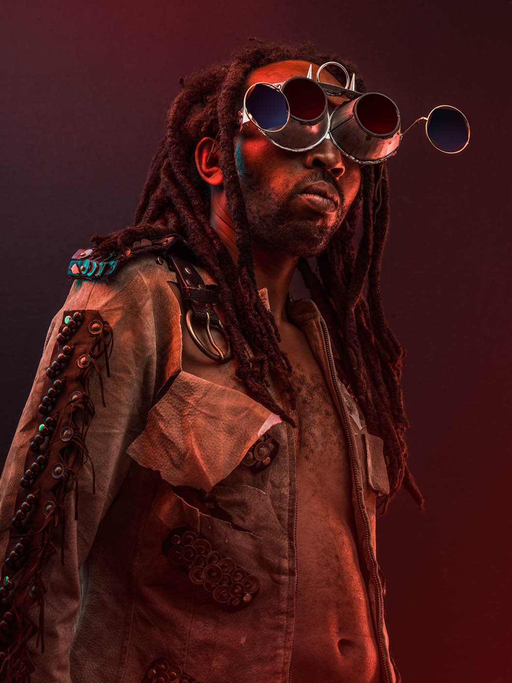 Karanja ‘the mole’ Jere: normally operates underground with his modified underground breathing suite. His hair is designed to appear like a rodent burrowing through the soil and he’s spactacles are telescopic able to see close to 1km away.