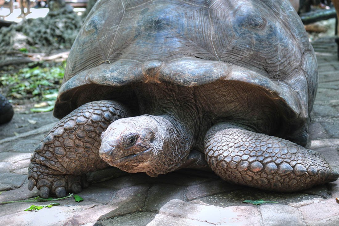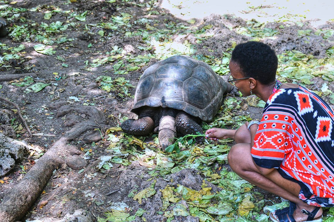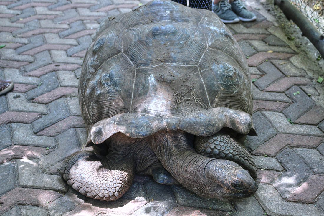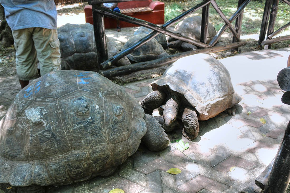 Aldabra tortoises are not indigenous to Zanzibar, originally from the islands of the Aldabra Atoll in the Seychelles, they were a gift in 1919 from the British governor of Seychelles to the first British resident of Zanzibar, Major F.B. Pearce. In exchange for the tortoises, a number of specimens of typical flowering plants were shipped to The Seychelles. The population grew quickly and by 1955 they numbered 200. Soon the numbers began to drop due to poaching, eventually the Zanzibar government, with assistance from the (World Animal Protection) built a large compound to protect the animals where they reside peacefully to date. Some of the tortoises have their ages inscribed on their shells, the oldest is around 192 years old. It must be nice to live that long on an island without a care in the world.
