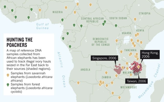 The center receives samples of seized ivory tasks from various authorities. From the samples the Center can assign a seizure of ivory closer than 300km to where it came from. Elephant DNA from seized ivory is extracted and analyzed in the lab. The DNA from the tasks is then matched against a genetic reference map of Africa’s elephant populations. This database has been generated by DNA collected from Elephant dung. The elephant dung was collected from more than 1400 samples, with each sample from a different family group. Genetic markers were then extracted out of the dung samples. The samples provide critical pieces of data that is used to create a genetic map of Elephants across Africa. From this map, the scientists are able to genetically determine the origin of a representative portion of major ivory seizures by matching the DNA with that from the dung samples.