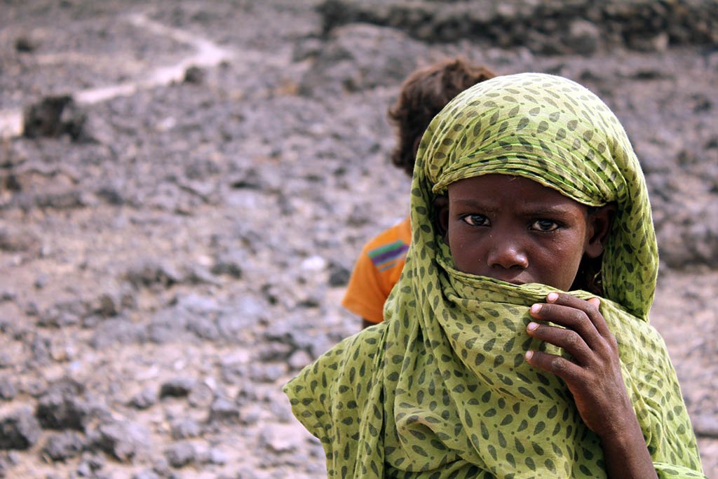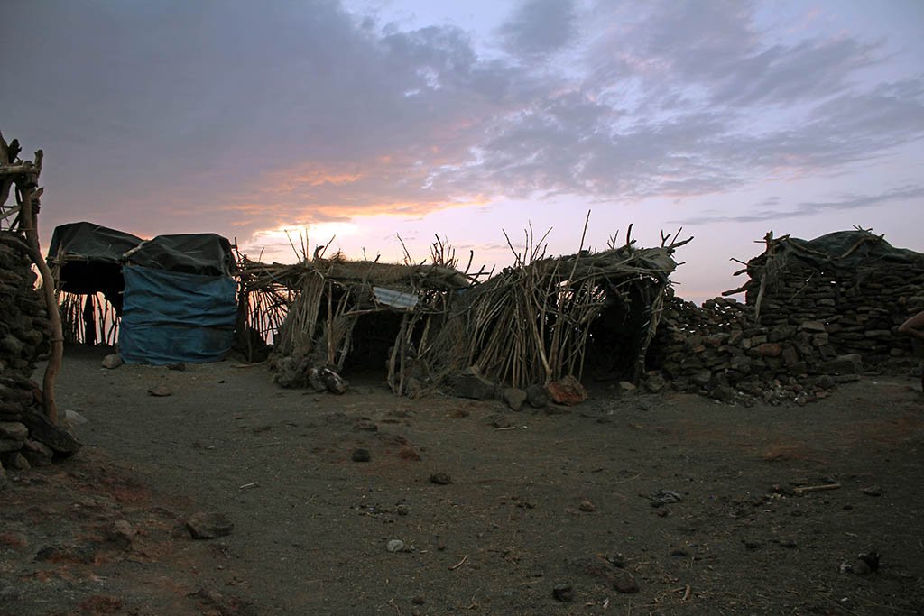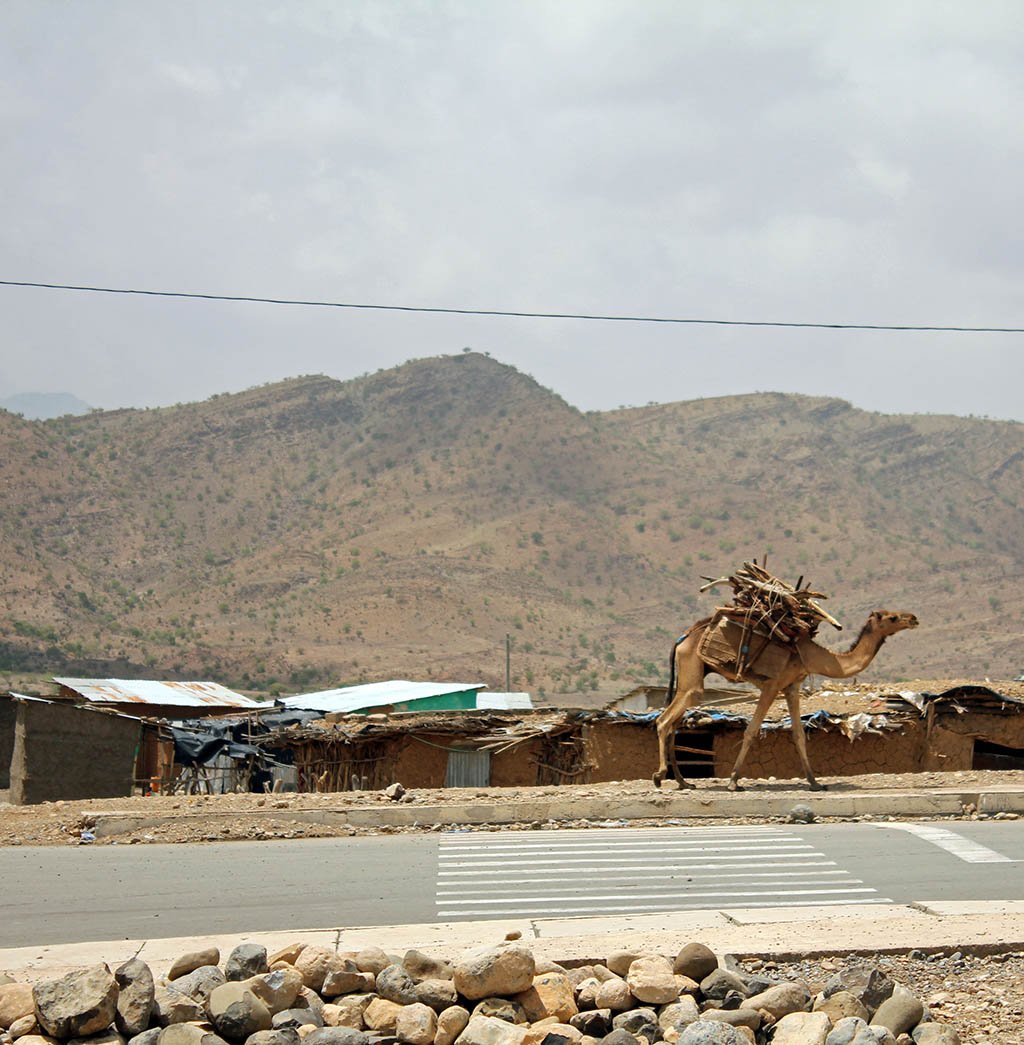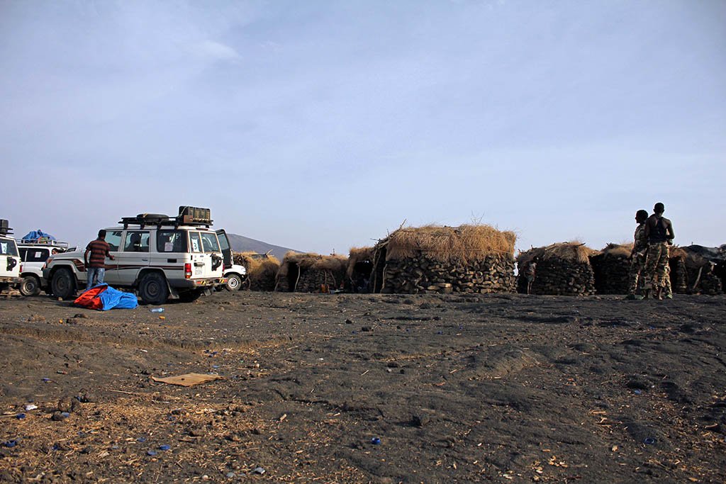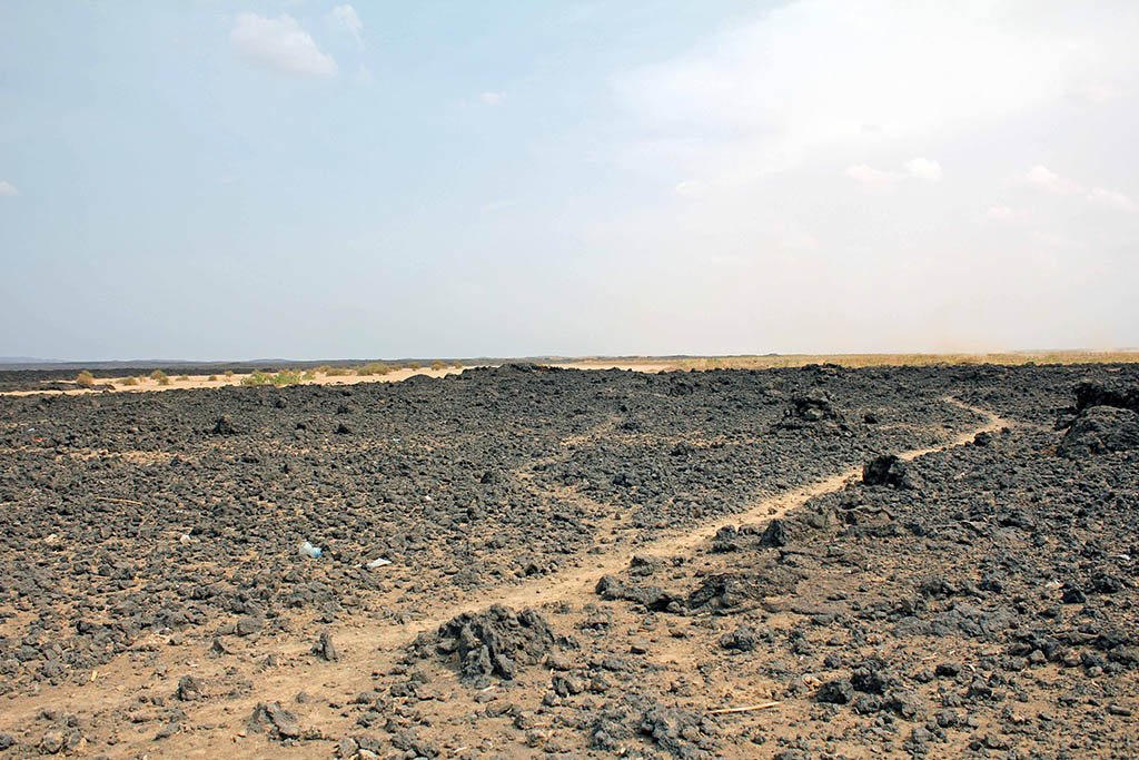 It was 41ºC as we drove off the smooth tarmac highway and ventured off-road into the desert. Like a sea of algae, solidified lava rock covered the area known as the Afar region. We stopped for lunch in the middle of nowhere in a tiny village. How people can survive out here is beyond me.