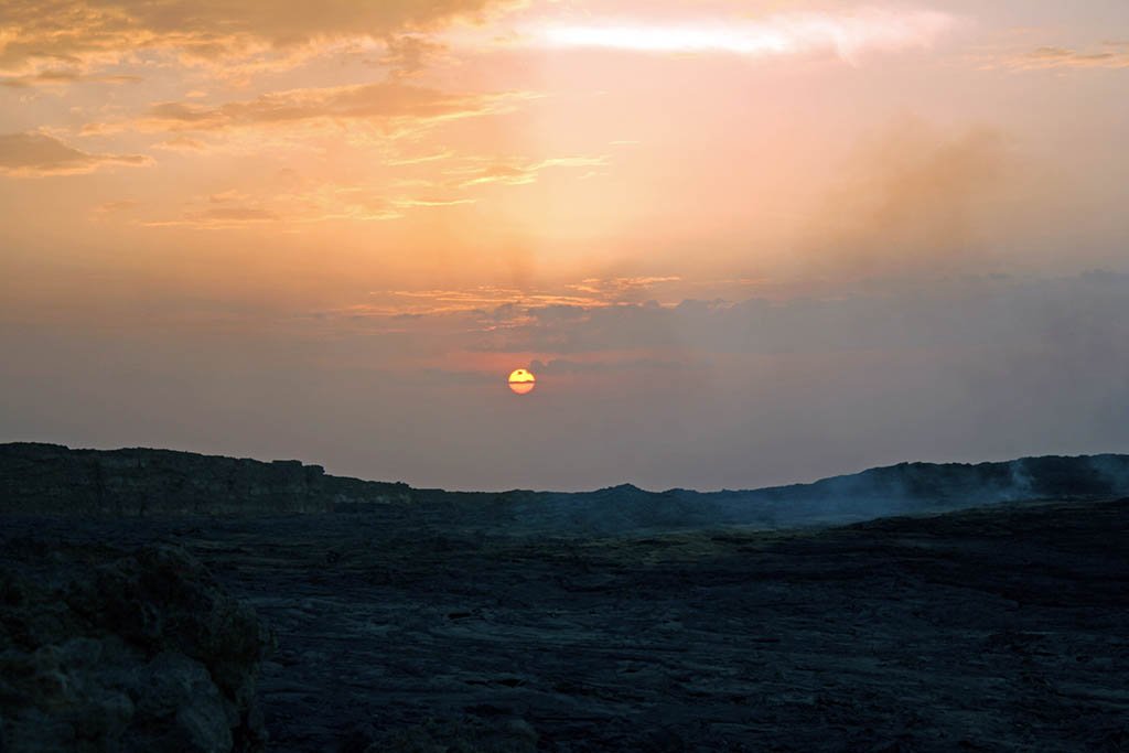 As soon as lunch was over, we hopped straight back into the heavens of our air-conditioned car. We had 35 kilometers to tackle. And in the desert, off-road, it would take about four hours. As the sun started to set we arrived at the military camp and once we had settled in and the sun had disappeared, the three camels were loaded with our mattresses and dinner, and we began our hike up to the crater of Erta Ale.