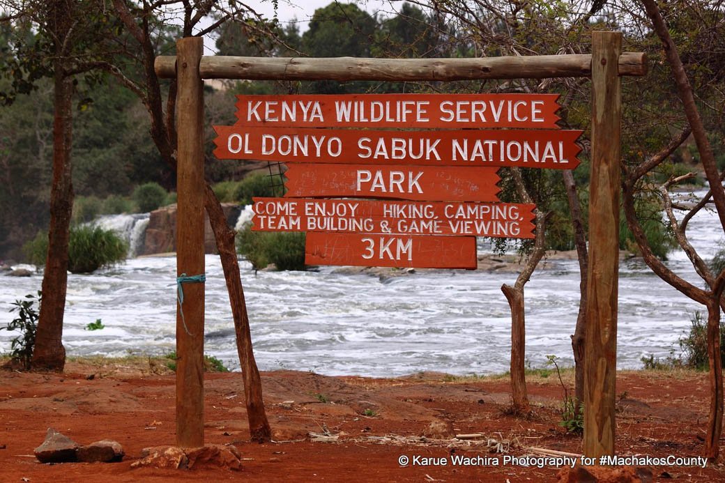 KWS sign board of the Oldonyo Sabuk National Park location of the Fourteen FallsThe sign welcoming you to the falls
