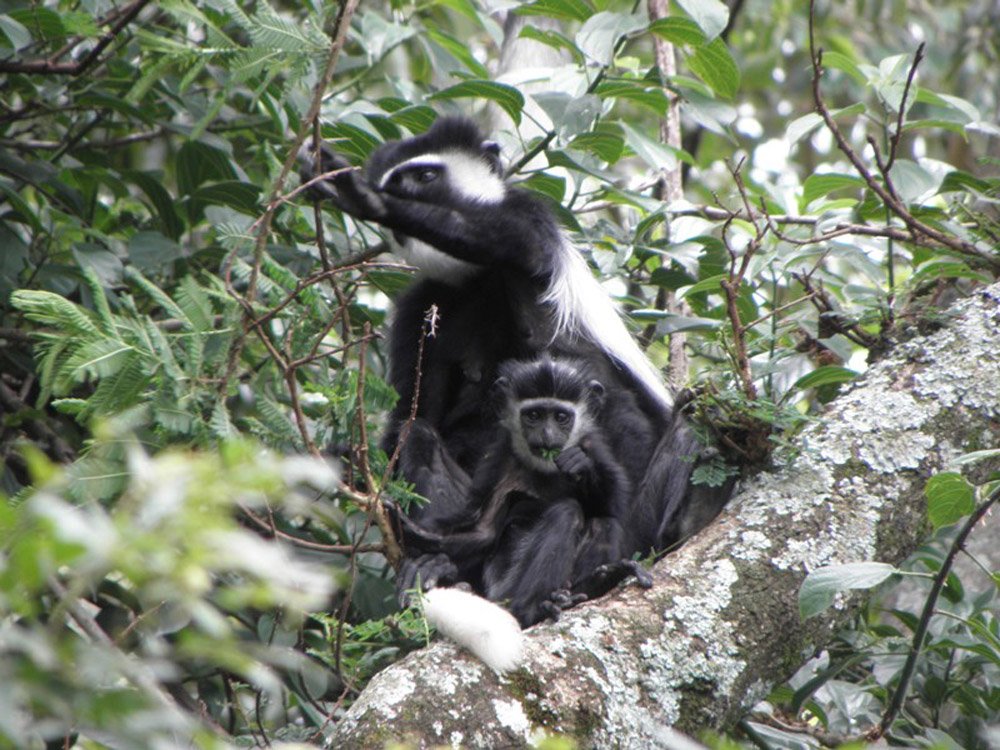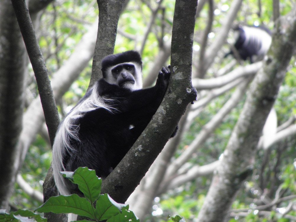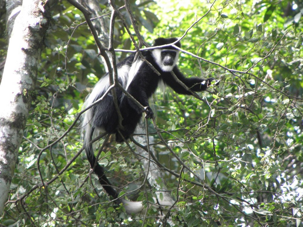 Black and White Colobus monkeys are numerous in the forest