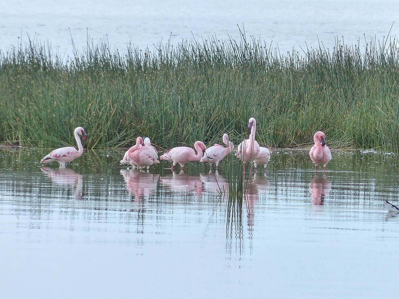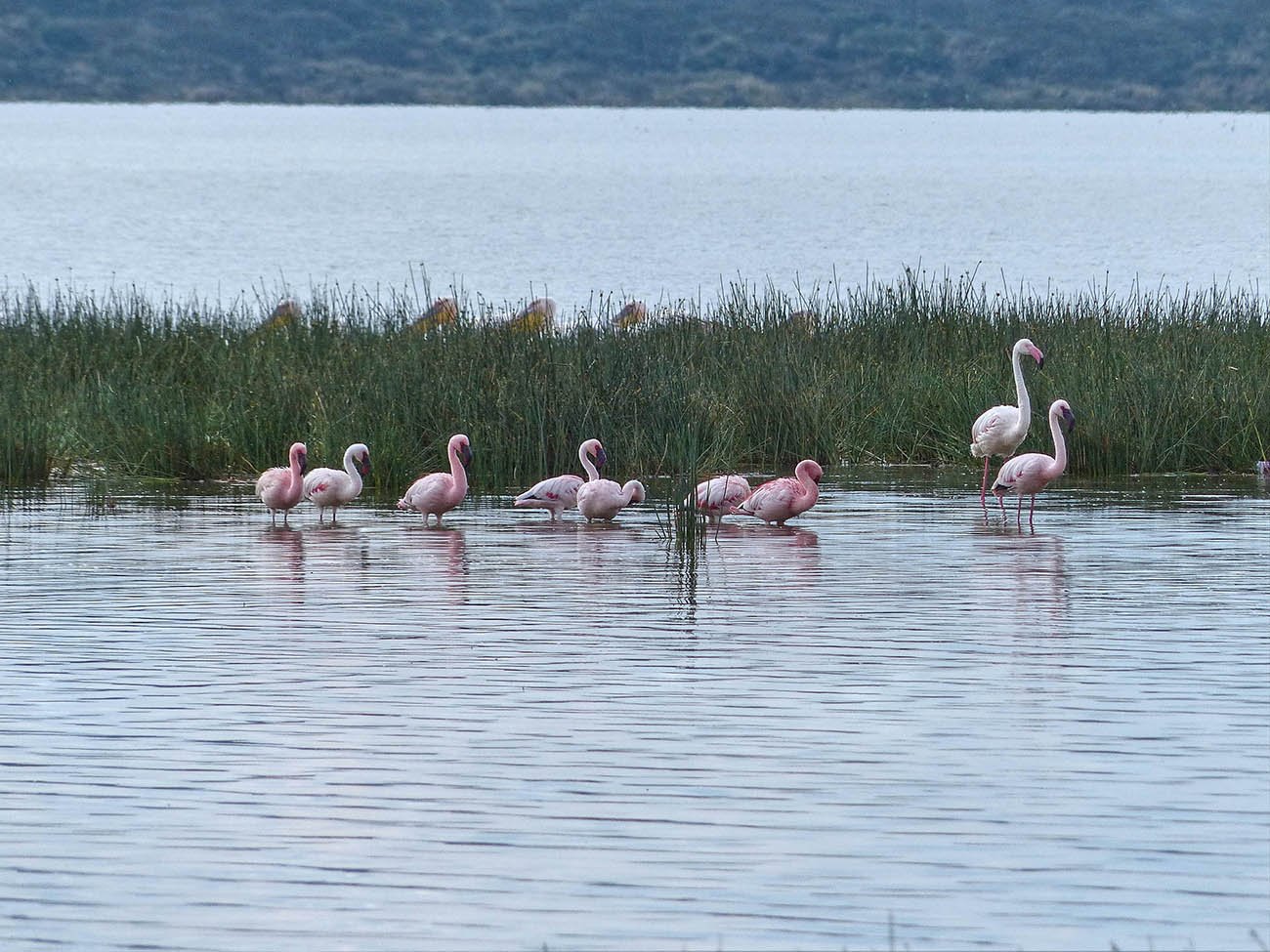 Straddling the flour of the Rift Valley is a chain of soda lakes. These lakes are generally shallow, alkaline lakes with relatively small inlets and no surface outlets. Surrounding the lakes are dramatic escarpments, interspersed by volcanoes, steaming Fumaroles, hot springs and occasionally host the feeding and movement of massive flocks of lesser flamingos. The alkaline lake waters support a prolific growth of green algae (Spirulina platensis), the main food of the itinerant Rift Valley population of lesser flamingos which congregate in the lakes in great numbers.