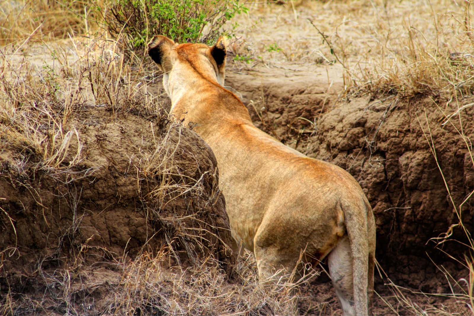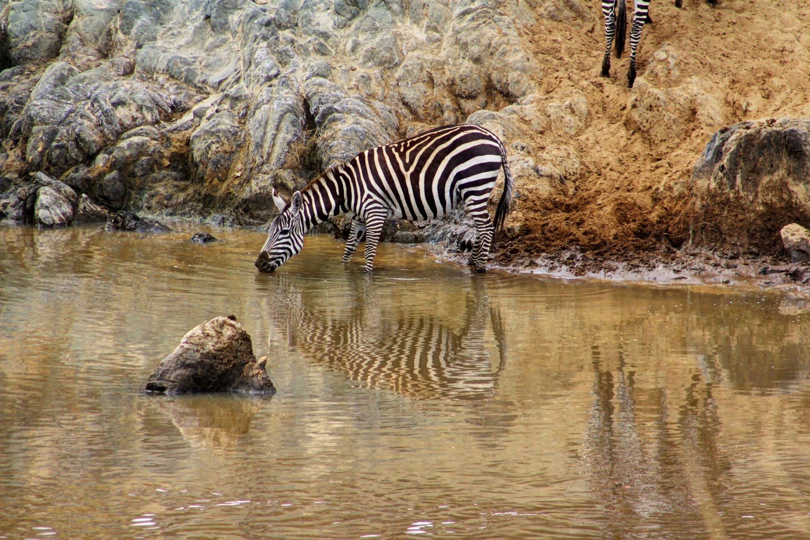I got to see lots of animals that somehow made up my missing the migration. The extremely knowledgeable guides go out of their way to make sure the guests see everything there is to see. The game drivers always alert each other via radio especially when they spot lions. So as soon as our driver was alerted of a lioness in the vicinity we drove off to the spot. There she was walking stealthily up the river bank. Below were some zebras quenching their thirst.