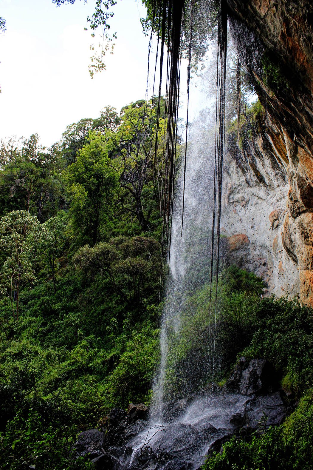 Once you get to the caves you can walk down to the floor of the falls. The non-existent path is treacherous so practical footwear is a must.