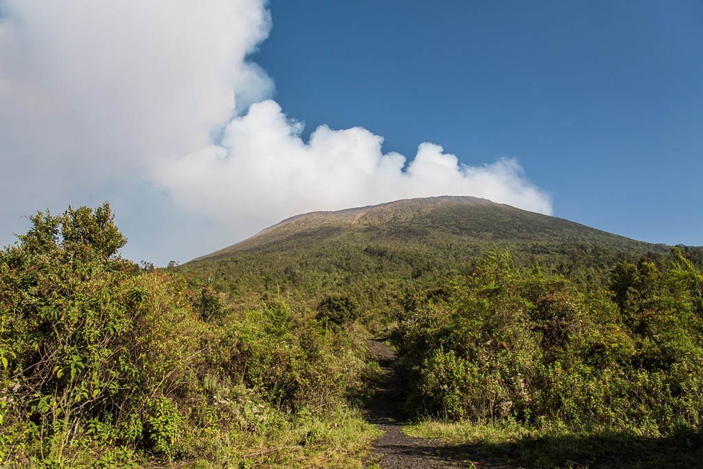 A heavy thunderstorm broke over Goma the night before the trek. The thunder rolled overhead with such a fury, almost threatening to split the heavens. I was assured by my hosts the next morning that it was just an ordinary tropical thunderstorm. I wondered how I would cope through such a storm at 3470 m high above in the tiny huts on the crater rim. The next morning however, the weather was clear and calm after several cloudy and hazy days with barely any sunshine.