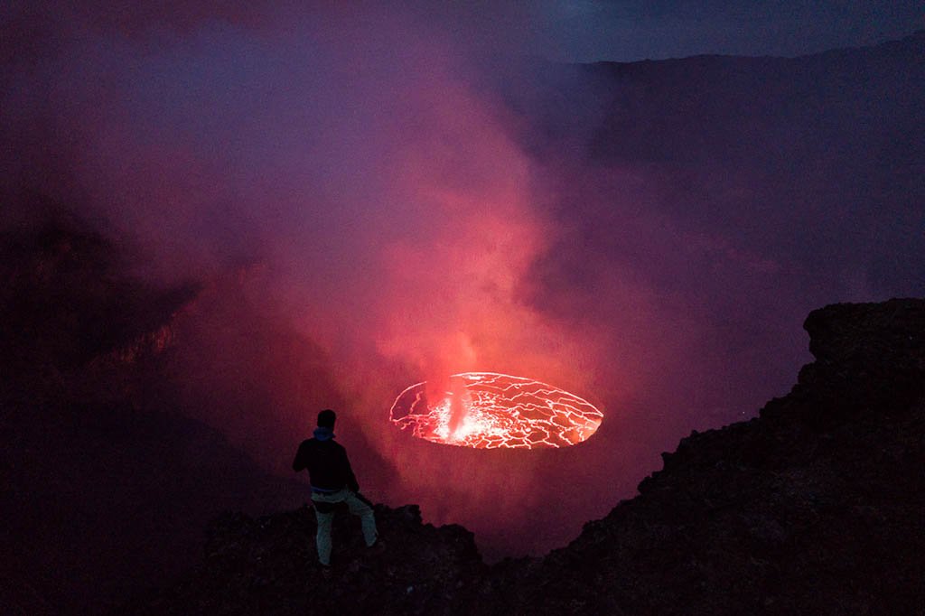 I first read about the Nyiragongo volcano in the Democratic Republic of Congo (DRC) during a trip to Rwanda three years ago. It aroused my interest as it features the world’s largest lava lake. Lava lakes are massive bodies of lava that can be wholly molten, partially molten, or even solidified. Lava lakes are a very rare phenomenon. Only a few volcanoes have hosted persistent or near-persistent lava lakes during recent decades.