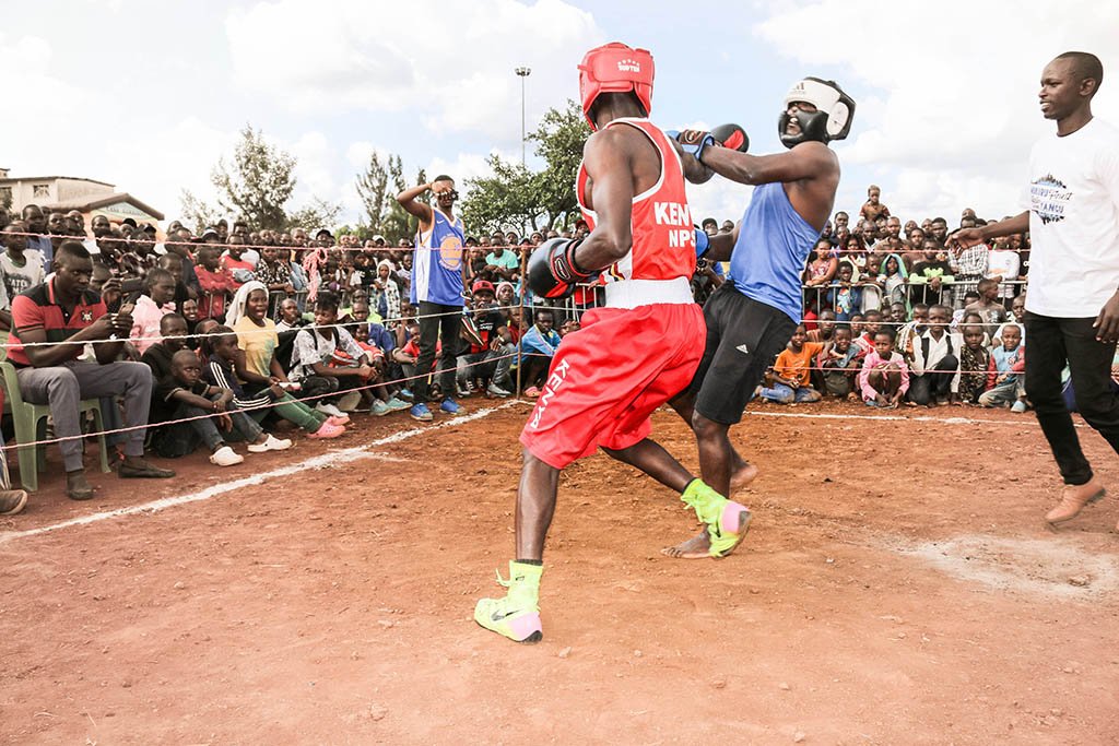 After an illustrious two-decade career in the ring, Benson Gicharu is hanging his gloves and will dedicate his time and energy coaching and mentoring young talented boxers. He launched his boxing team club at the Mukuru Finest event and earlier did a testimonial fight while barefoot against Maurice Ochieng.