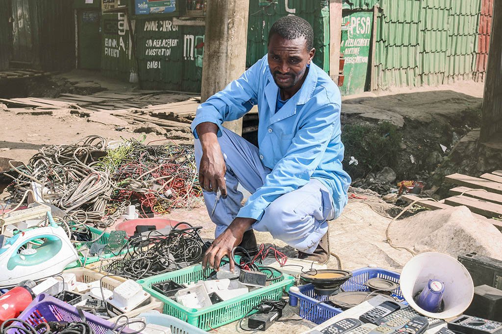 Joseph buys and collects used or damaged electronic gadgets which he then fixes and resells at a profit. The work not only affords him a good income but he also has a full-time employee.
