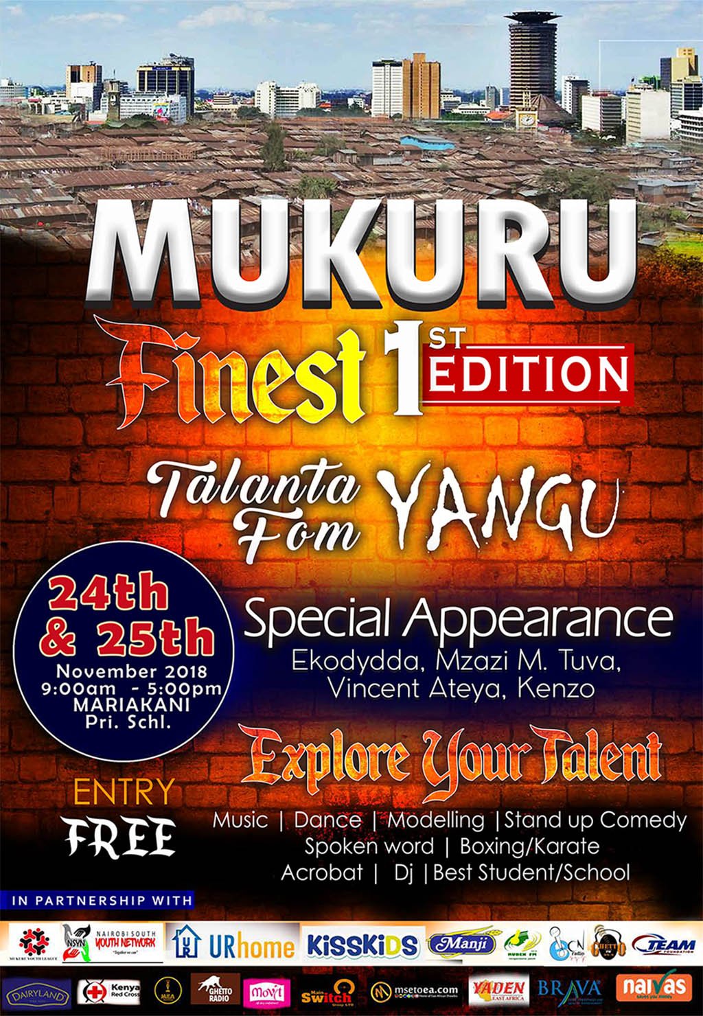 Adam was part of the organizing committee of the Mukuru Finest talent show – an event full of pomp and colour held on the 24 – 25th Nov a gathering of talents from across the vast Mukuru slums to perform music, dances, poetry, comedy, sports among others and also emphasize the role of education, solidarity and engagement among residents.