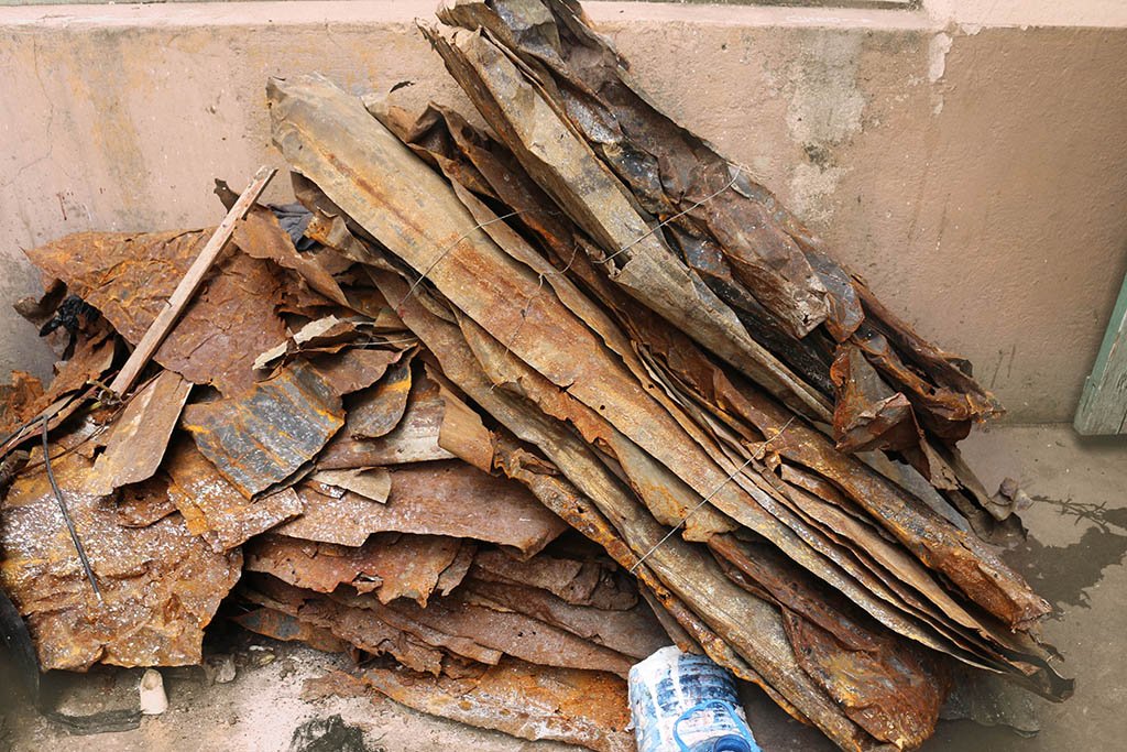 ‘I used to buy the iron sheets mainly after there was a fire in the slum and then I would recycle the scrap metal. Buying also allows the person whose house has burnt down to get some money. These days, I also look for people who want to renovate their houses and buy the iron sheet which I can use for my work. You have to burn the iron sheet so that it’s lighter and hence easier to shape.  Normally, I try to allow the material to maintain its natural form by applying shellac on it so that it does not continue to rust,’ adds Adam.[i]
