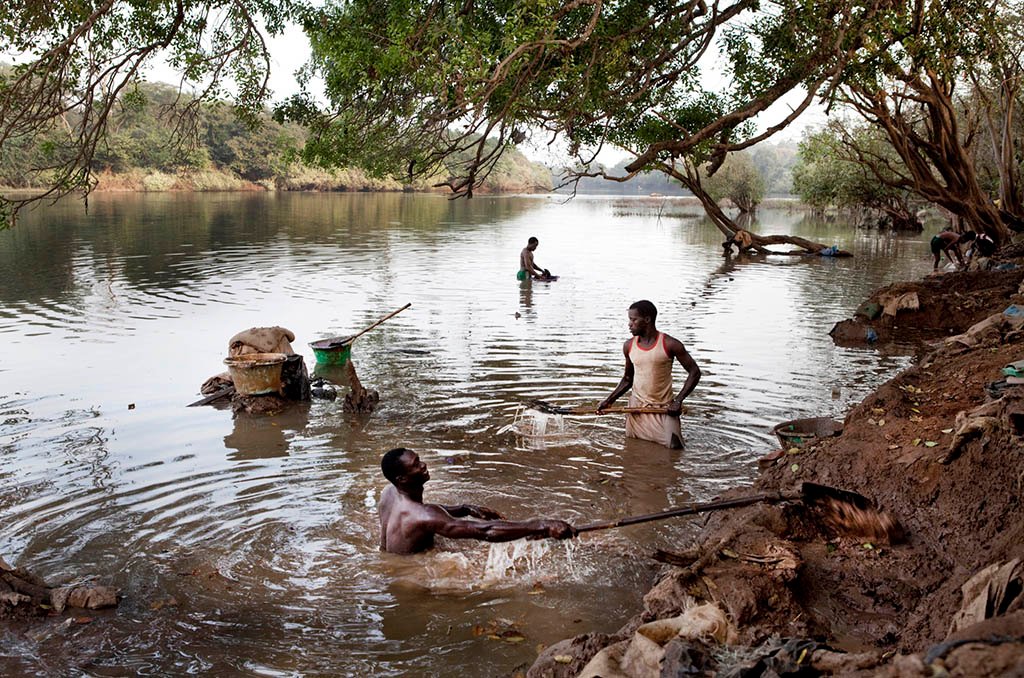 Gold mining along the River Gambia as it flows through Southern Senegal draws economic migrants from all over West Africa. The gold bearing sand is filtered and then mixed with mercury to draw the gold out.
