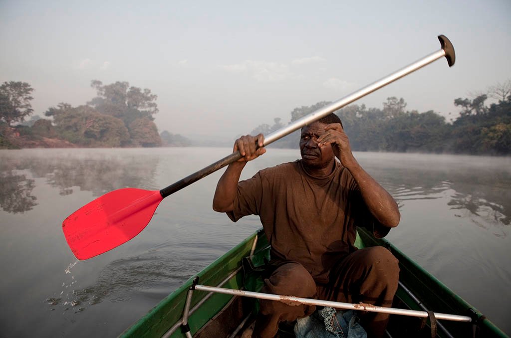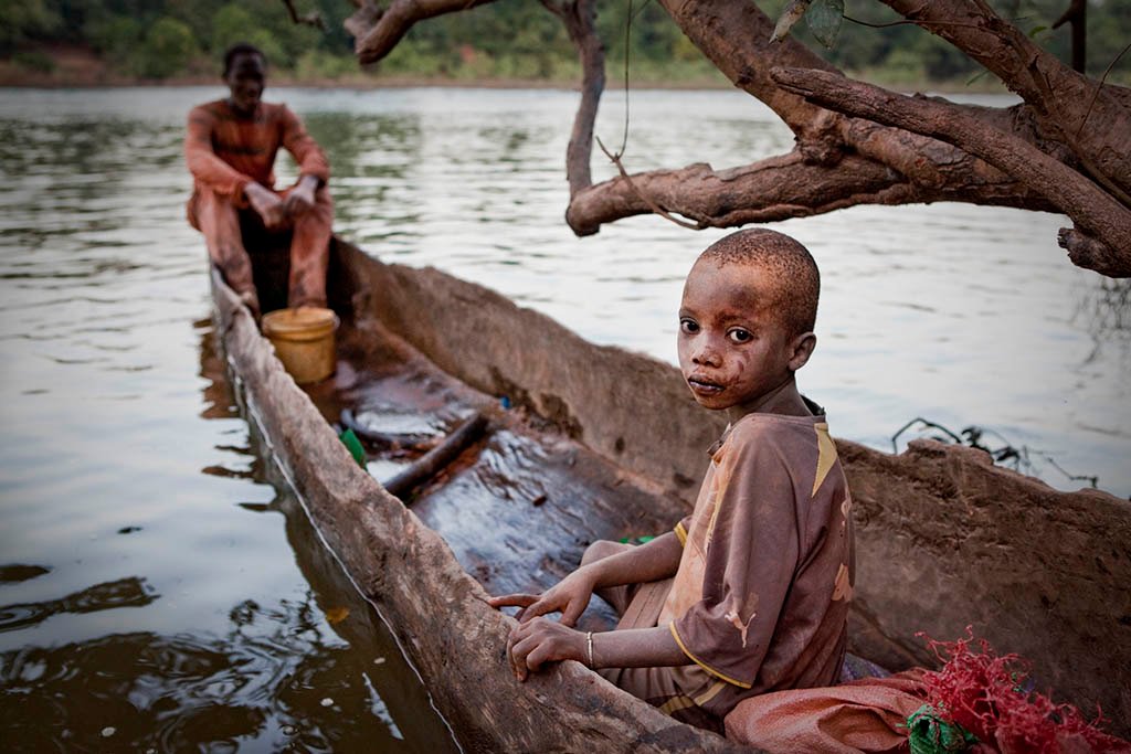 A young mine worker waits to be ferried across the River Gambia after working with his father at one of eastern Senegal’s artisanal gold mines.