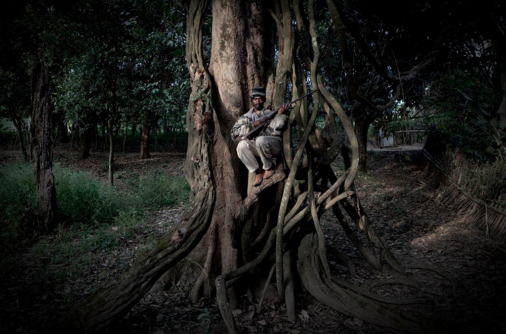 Amadou Djallow, a tailor by day and hunter by night . Photographed in his home village, Horé Dimma where the source of River Gambia is located.
