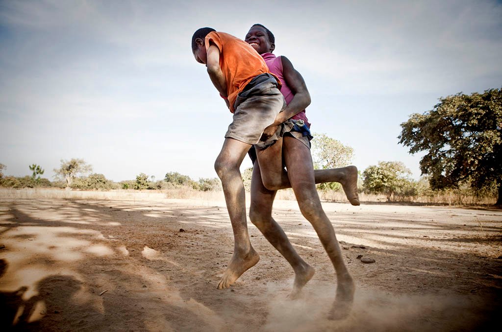 Young boys wrestling in a traditional Gambian style in the riverside village of Karantaba. Karantaba was where Scottish explorer, Mungo Park, set out from for two of his epic journeys in search of the Niger river over 200 years ago
