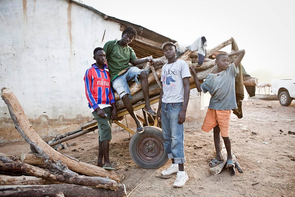A group of boys with a haul of firewood to sell to a local bakery, despite laws against cutting down live trees. The boys said they were doing this because of lack of regular employment, and did not want to follow thousands of other young Gambians who had taken ‘the back-way’ to Europe