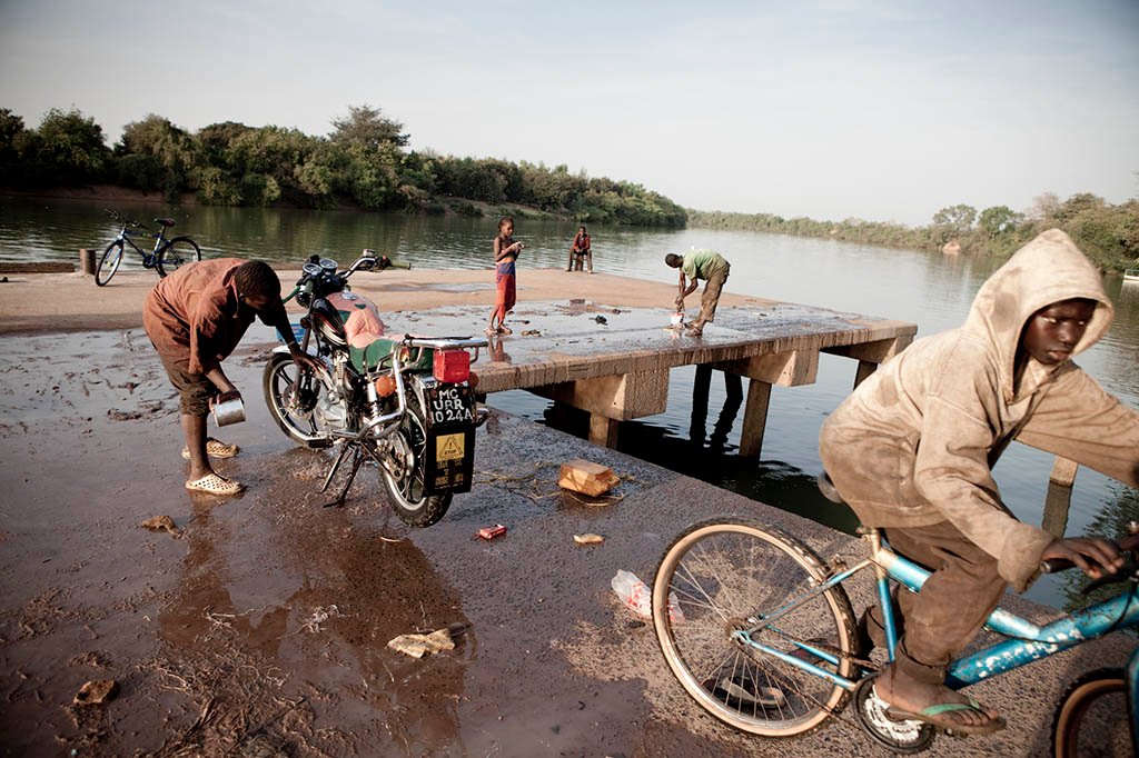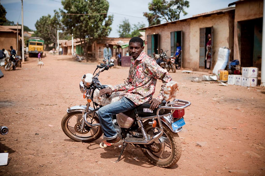 Mousa Djallow Motorcycle taxis rider. Djallow bringings customers up and down through the Fouta Djallon highlands of Guinea from the source of River Gambia. He makes the arduous 60km – 10 hours ride down the rock-strewn paths of the Fouta Djallon to Senegal, up to three times a week. The Fouta Djallon has the reputation of having some of the worst roads in the world