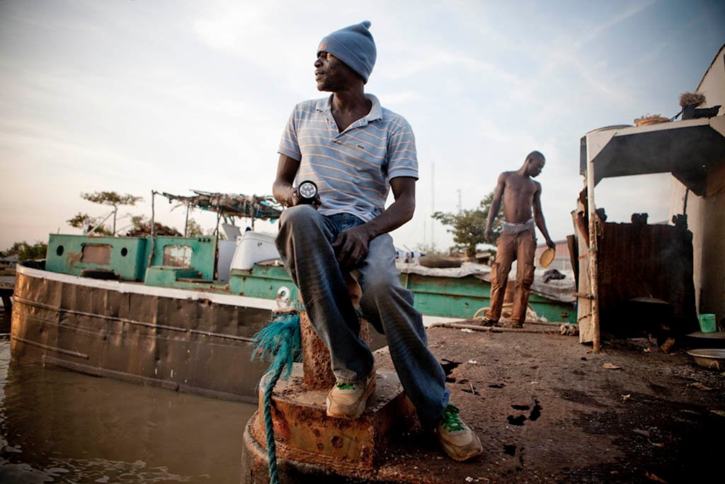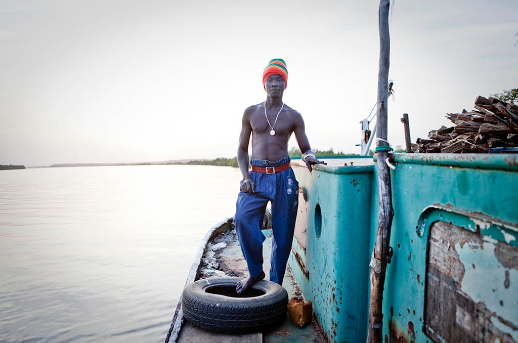 Lopiz Jarju, one of the few full-time sailors still working on River Gambia. He works for the Gambia Groundnut Corporation on one of their tugboats that pulls barges with 100 tonne loads of peanuts from upcountry loading centers on the banks of River Gambia to a processing plant where the river meets the Atlantic ocean at the capital, Banjul.