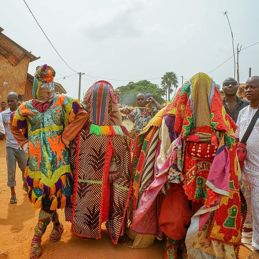 Egungun Yoruba masquerades or masked costumed figures