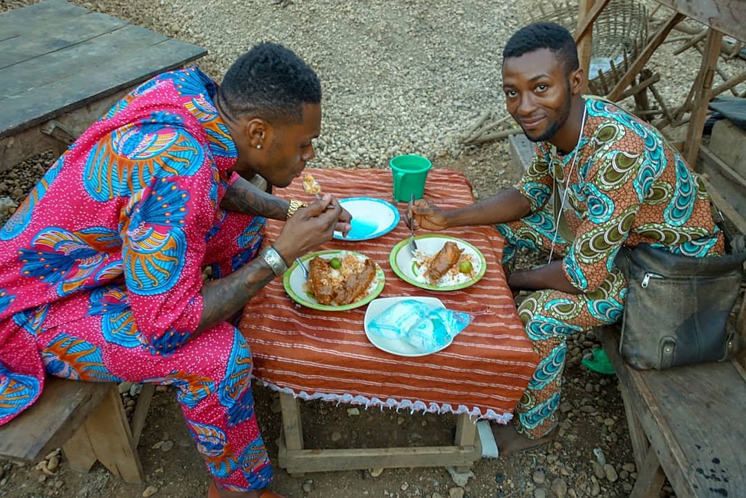 Eating some street food in Ouidah, Benin with my bro Rhoo. Turkey in a tomato sauce with rice.