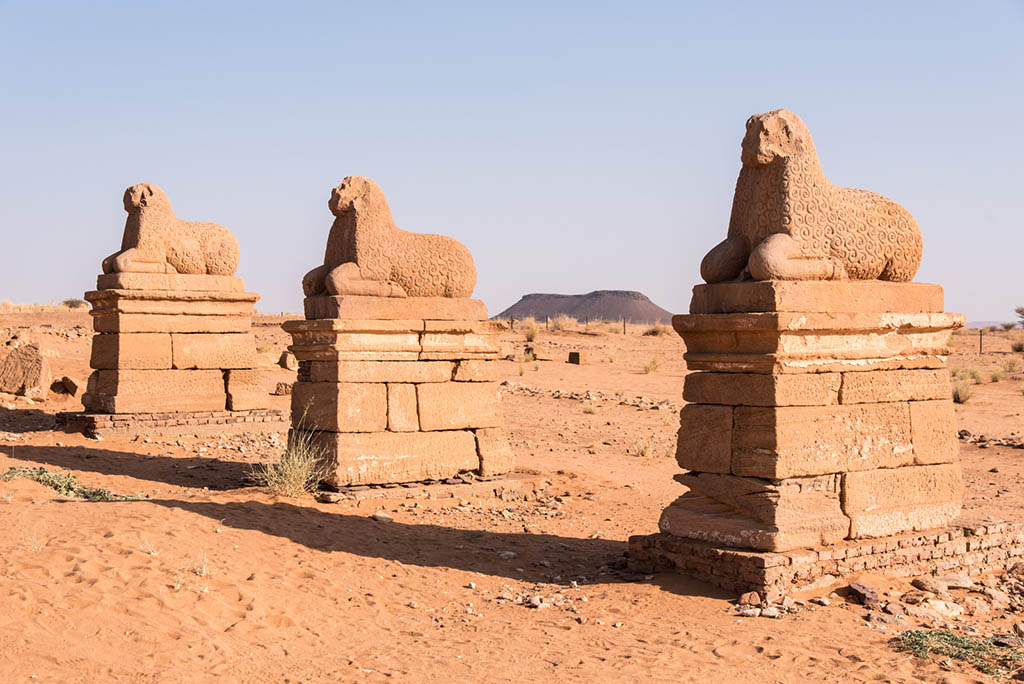 The Meroitic temples of Musawarat es -Sufra and Nagaa are 35 and 50km off the highway in the Nubian Desert in eastern Sudan, along the banks of the Nile River.