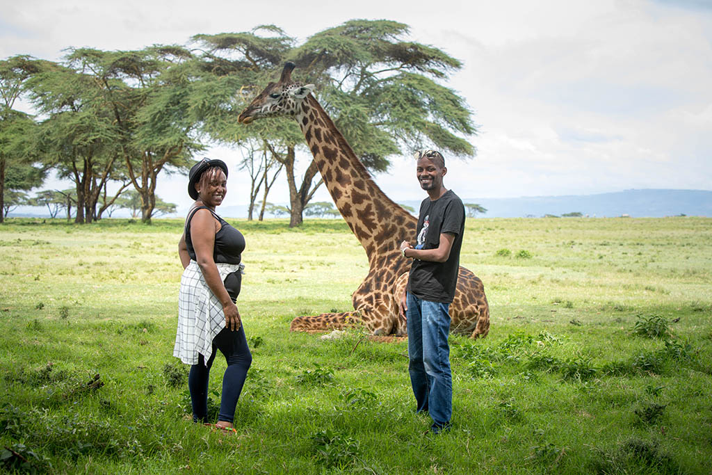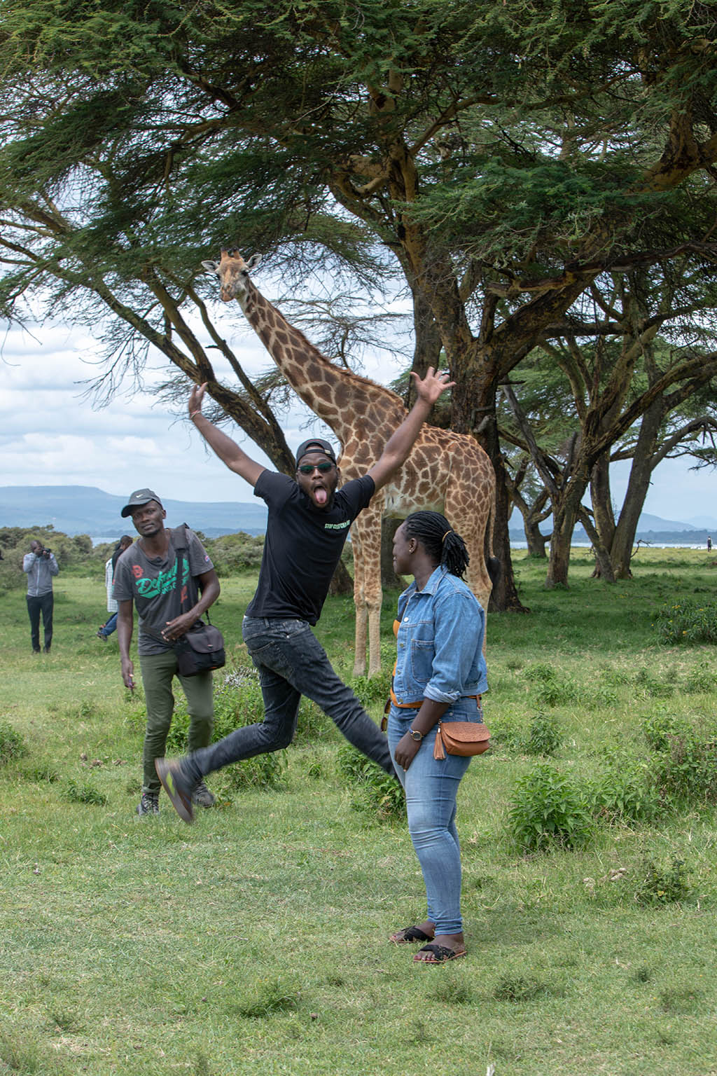 Next time you are in Naivasha, you have got to visit the Cresent Island Game Park. All you need to do is book a speedboat to get you across hippopotamus territory on the lake. The park is home to giraffes, zebras, wildebeests, and a few other timid animals. When you are face to knee with a majestic giraffe, you quickly realize how short you really are. No length of high heels or stilts can elevate you to giraffe height…thankfully, you won’t be here to compete in heels. A comfortable pair of sports shoes will do. A few more clicks of the camera for photos and lunch was soon served to part of the group that had ventured to the island.