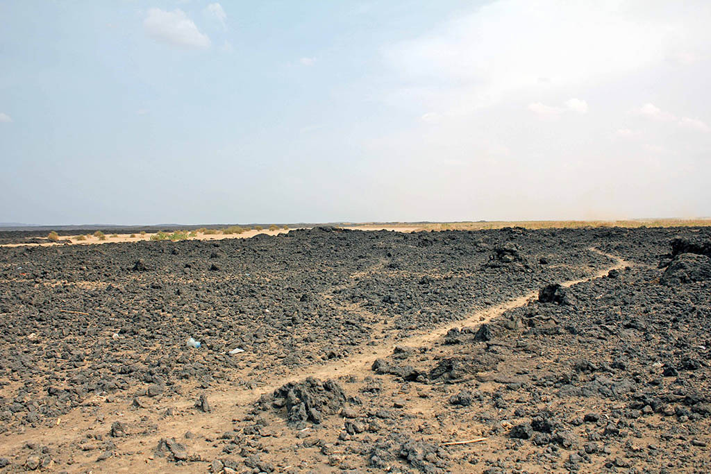 It was 41ºC as we drove off the smooth tarmac highway and ventured off-road into the desert. Like a sea of algae, solidified lava rock covered the area known as the Afar region. We stopped for lunch in the middle of nowhere in a tiny village. How people can survive out here is beyond me.