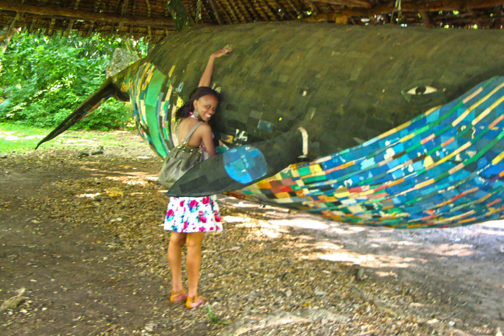 Took this picture like 2-3 years ago, hence the outfit change. The whale is made entirely of plastic flip flops that had washed ashore on beaches. Please don’t litter