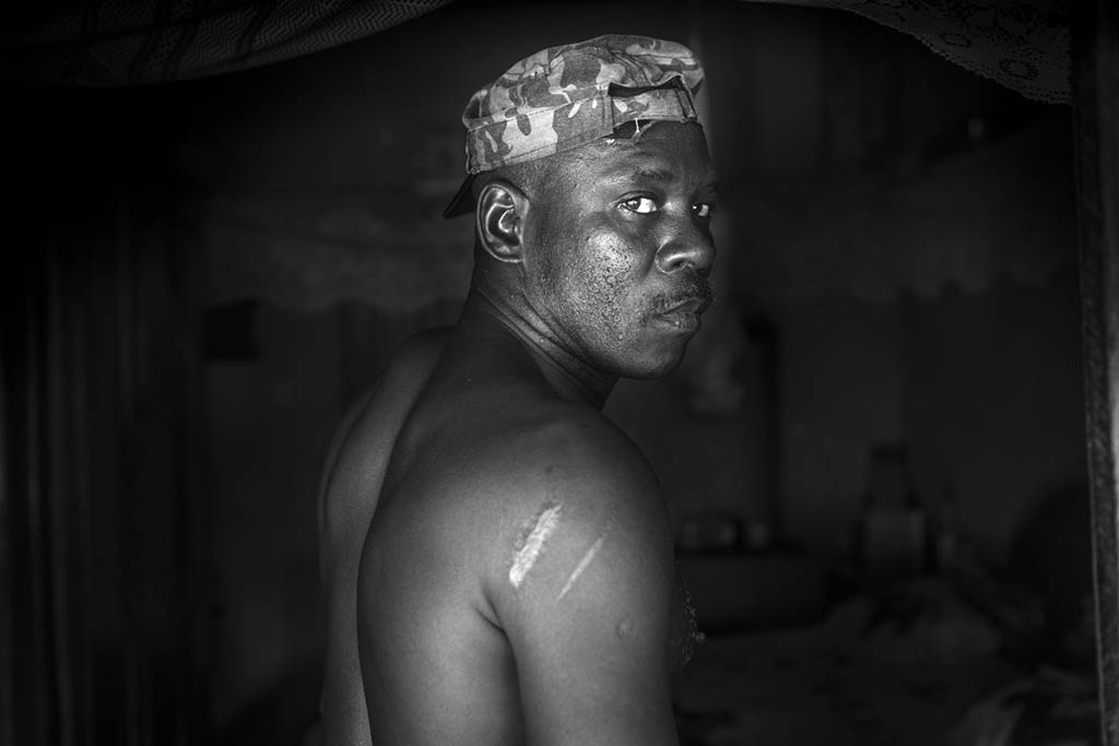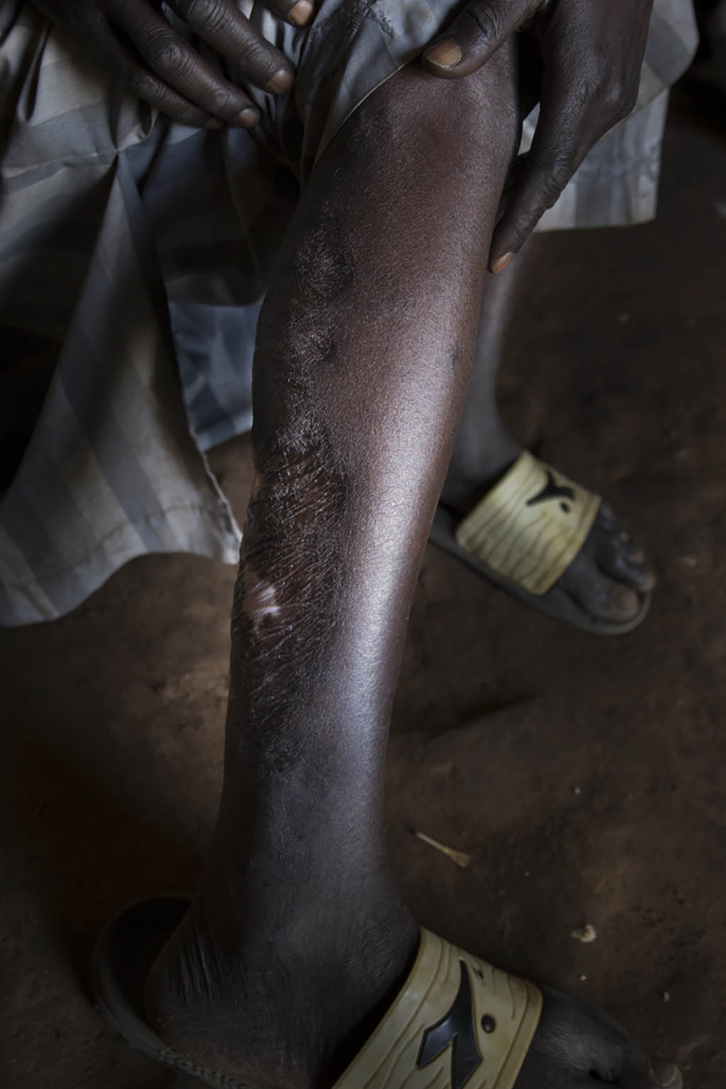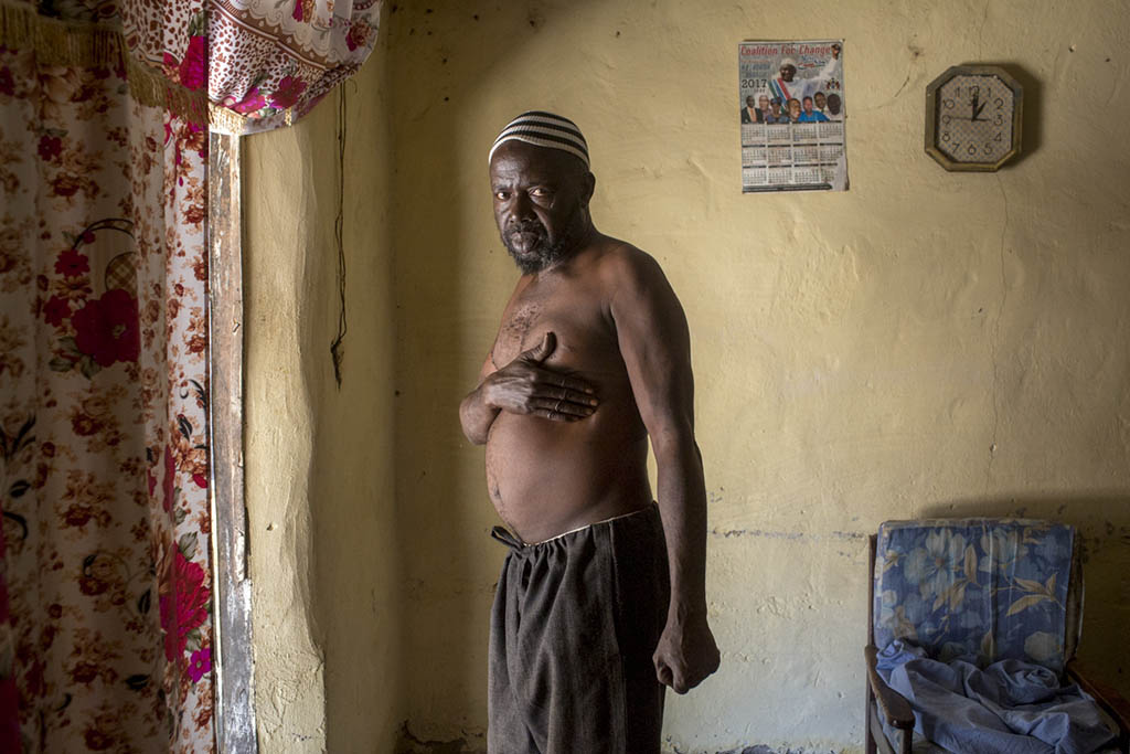 Mohammed Fatty was arrested, unlawfully detained and tortured for over 8 months after taking place in a peaceful protest in April of 2016 under the former regime of Yahay Jammeh.  He was granted amnesty when the current president of The Gambia took power.  He bears scars from his time of being beaten with a steel pipe along his abdomen, arms and back.